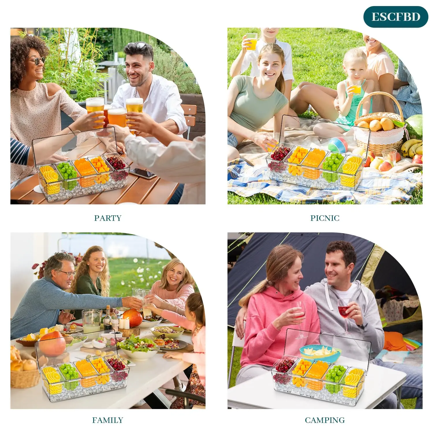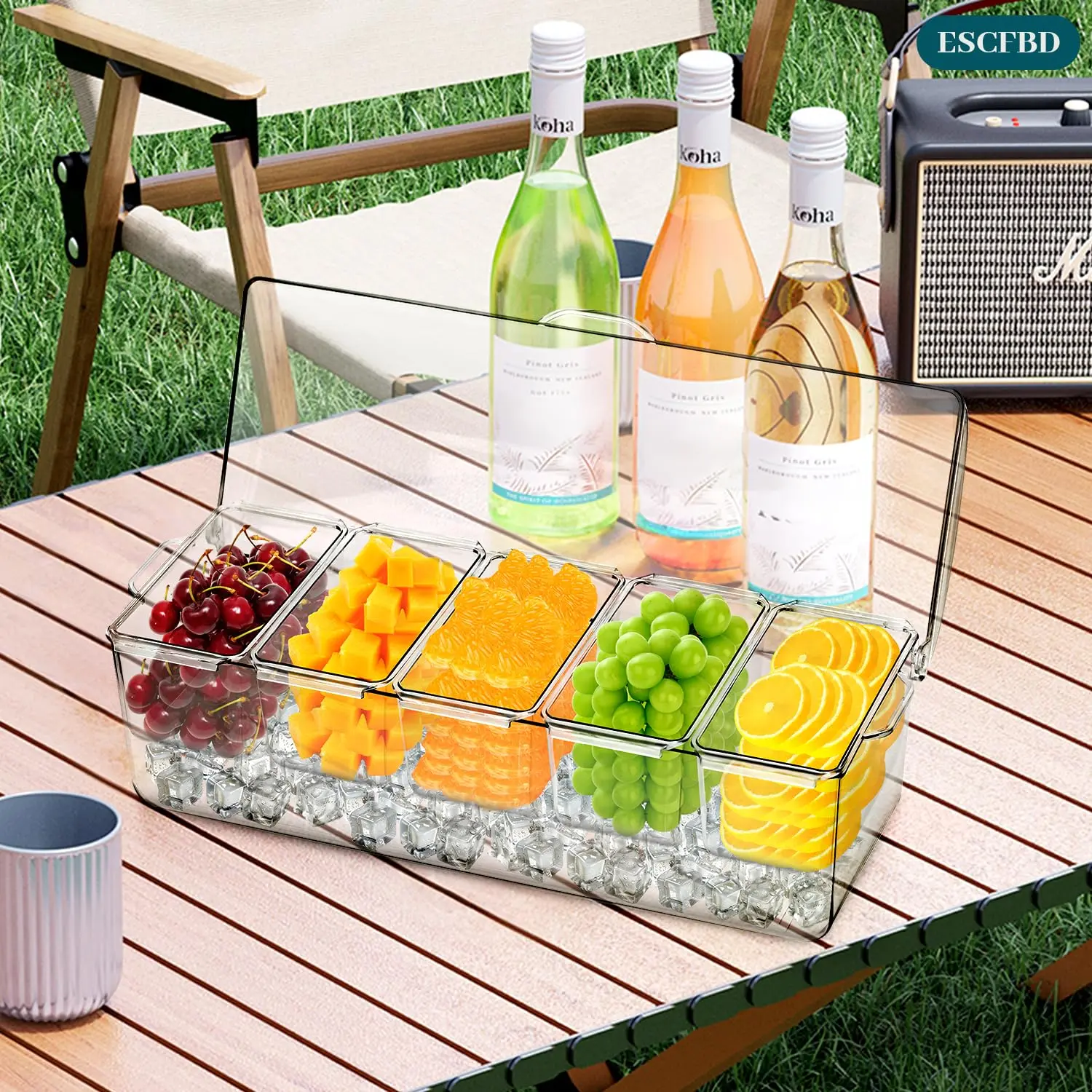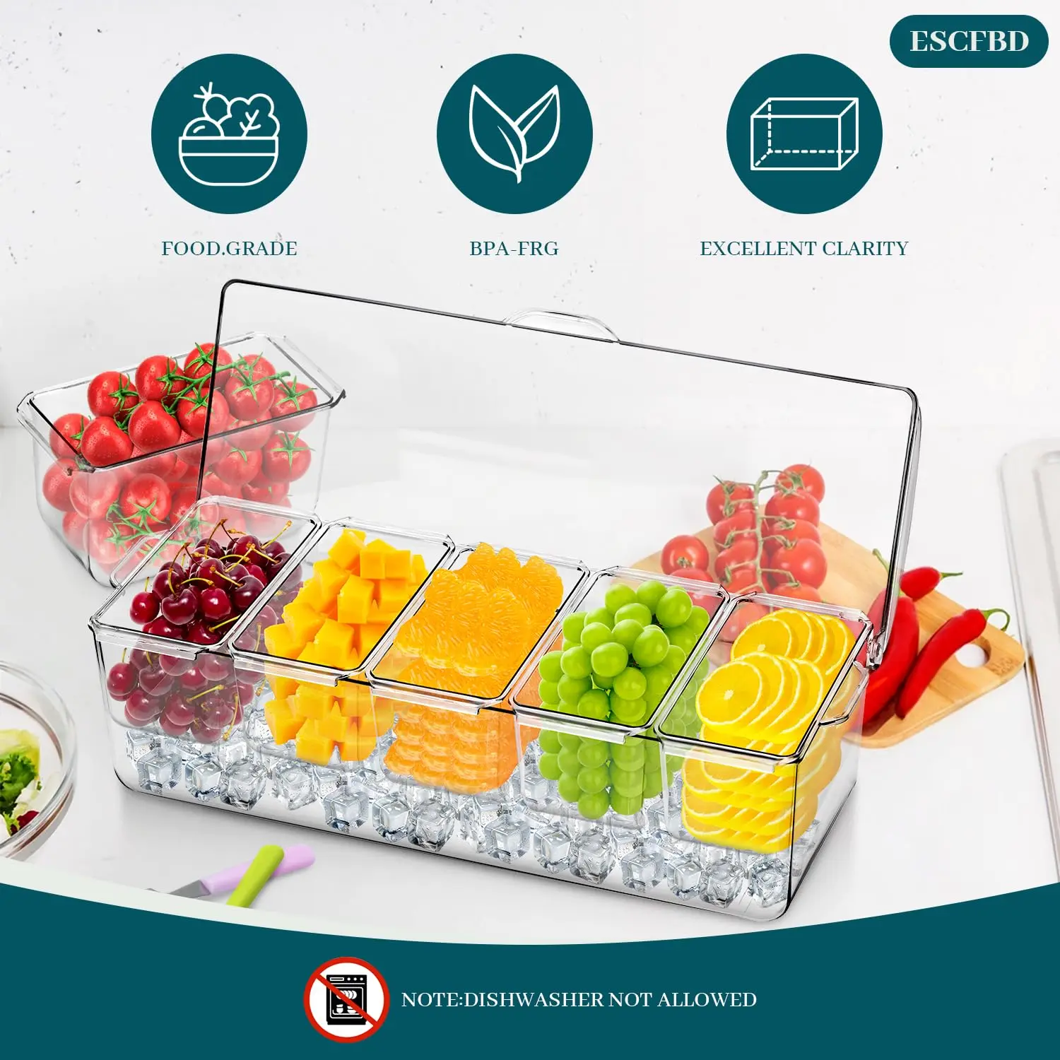 ·old Condiment Storage:Chilled Condiment Server has 5 removable compartments that allow you to store and serve a variety of condiments, fruits, salads, sauces and more while keeping them perfectly chilled.