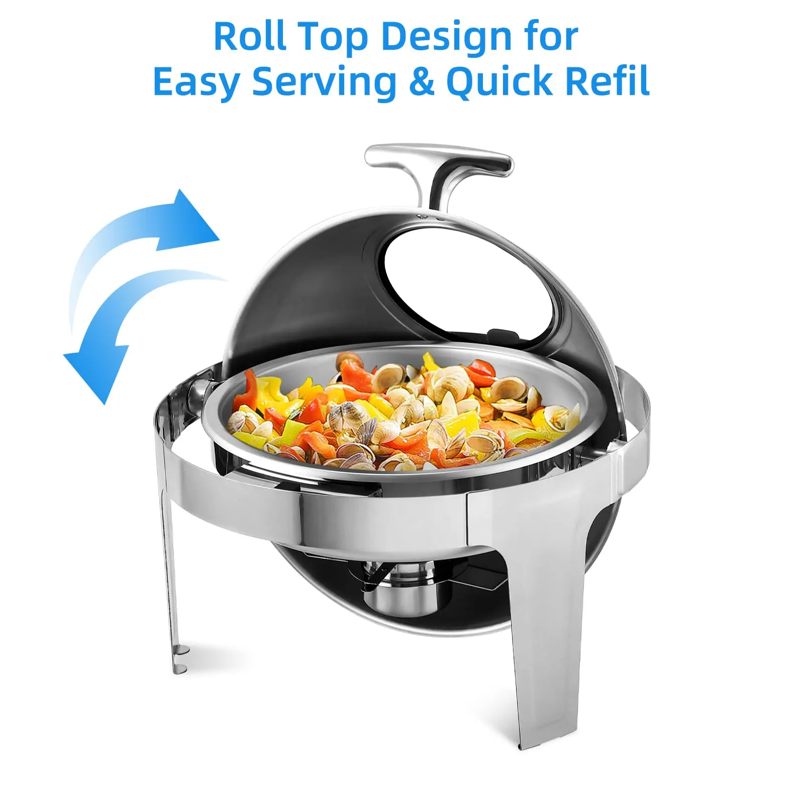 · Premium stainless steel material: The roll top chafing dish buffet set is made entirely of high-quality stainless steel, which not only ensures durability but also makes it easy to clean. The stainless steel construction is ideal for food warmers for parties, as it is resistant to rust, corrosion, and staining, ensuring a long-lasting and hygienic product.