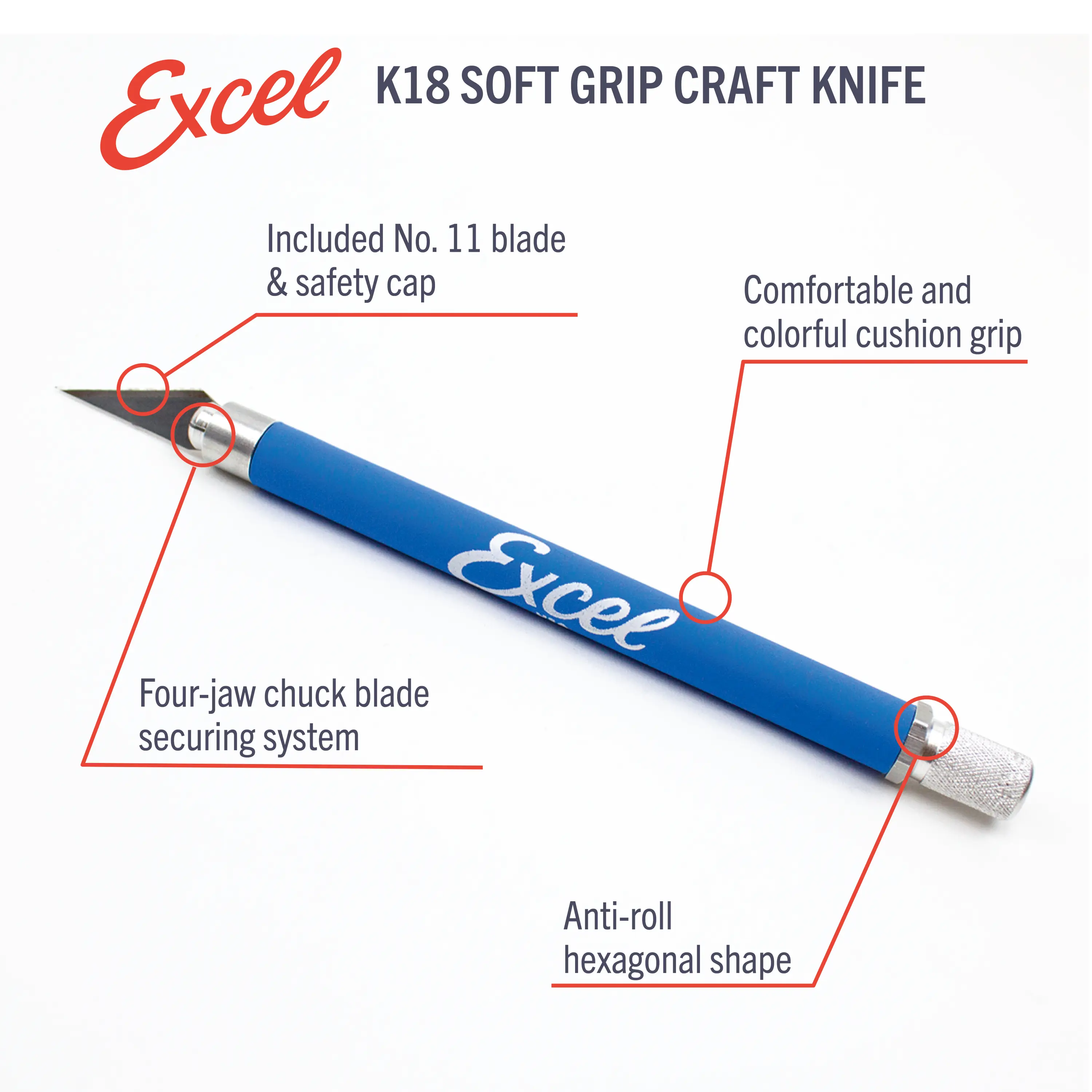 Excel Blades K18 Cushion Grip Hobby Knife w/ 5 Extra #11 Blades - Craft Knife Set