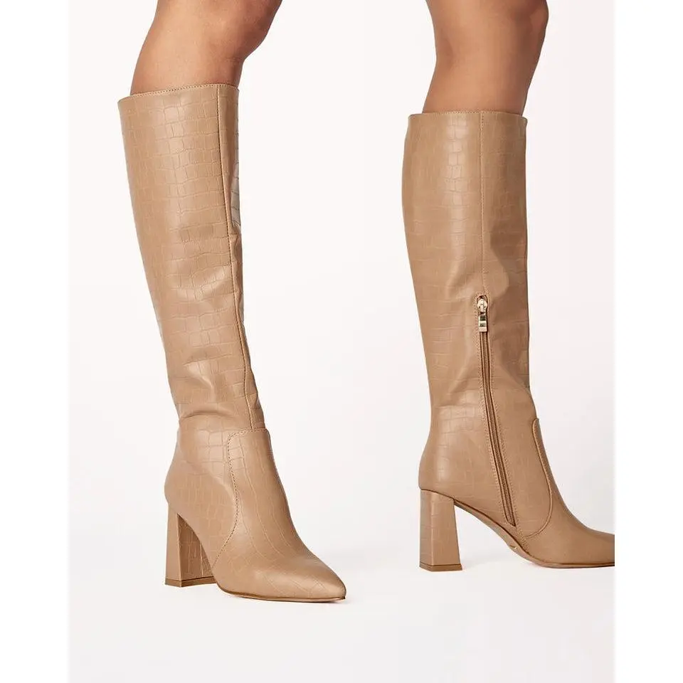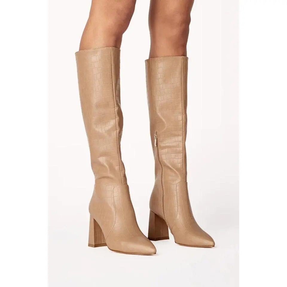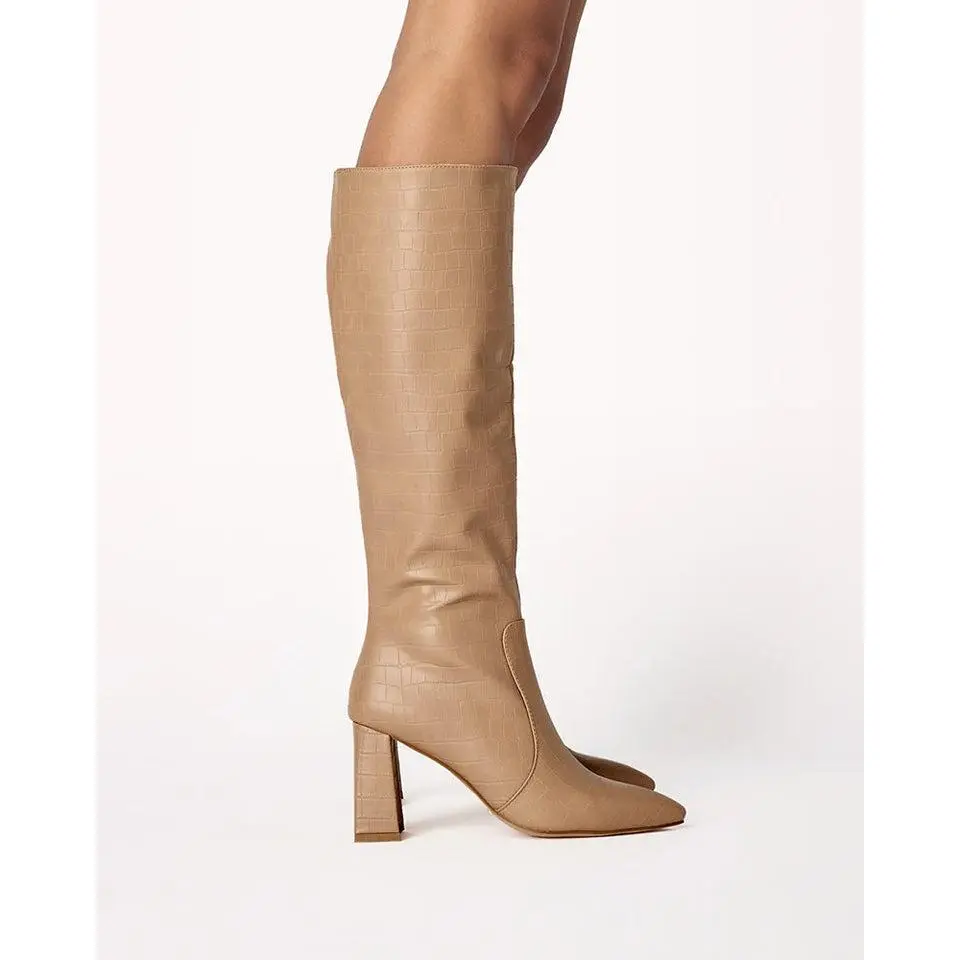 Details: Flared high block heelClosed pointed toeStructured upperInner zip closureClosed heel counterSynthetic upper, lining and outsole Heel height 8.5cmElanor by Billini is a contemporary long boot. Stay on-trend with the fiercely chic Elanor, our top pick for transeasonal dressing.This style is a regular fit. We suggest going your regular size.