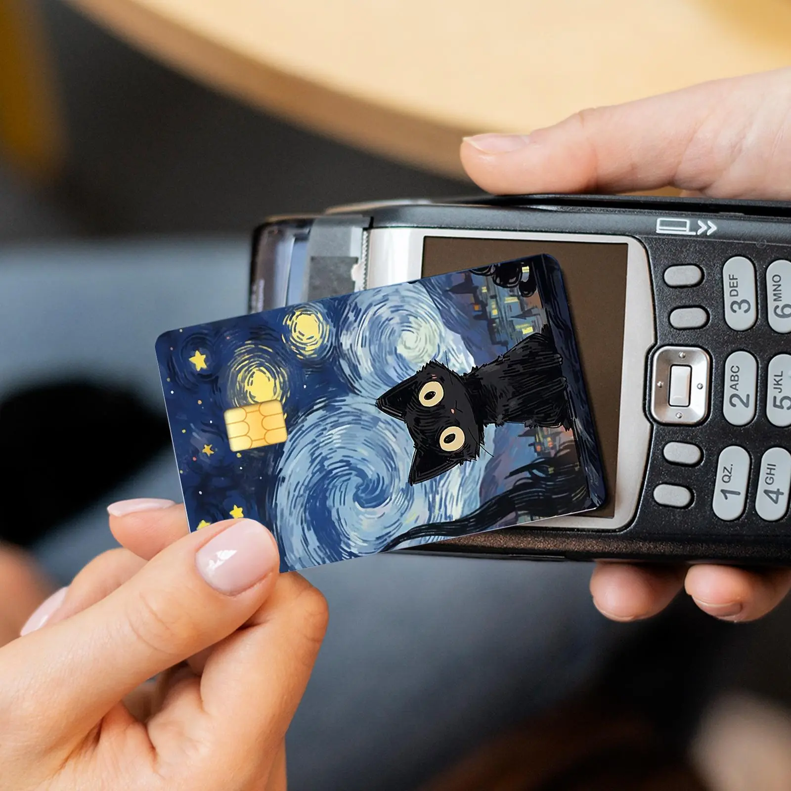 【Unique Artwork】: Featuring a captivating Van Gogh Starry Night cat pattern, this card skin adds an artistic touch to your cards.