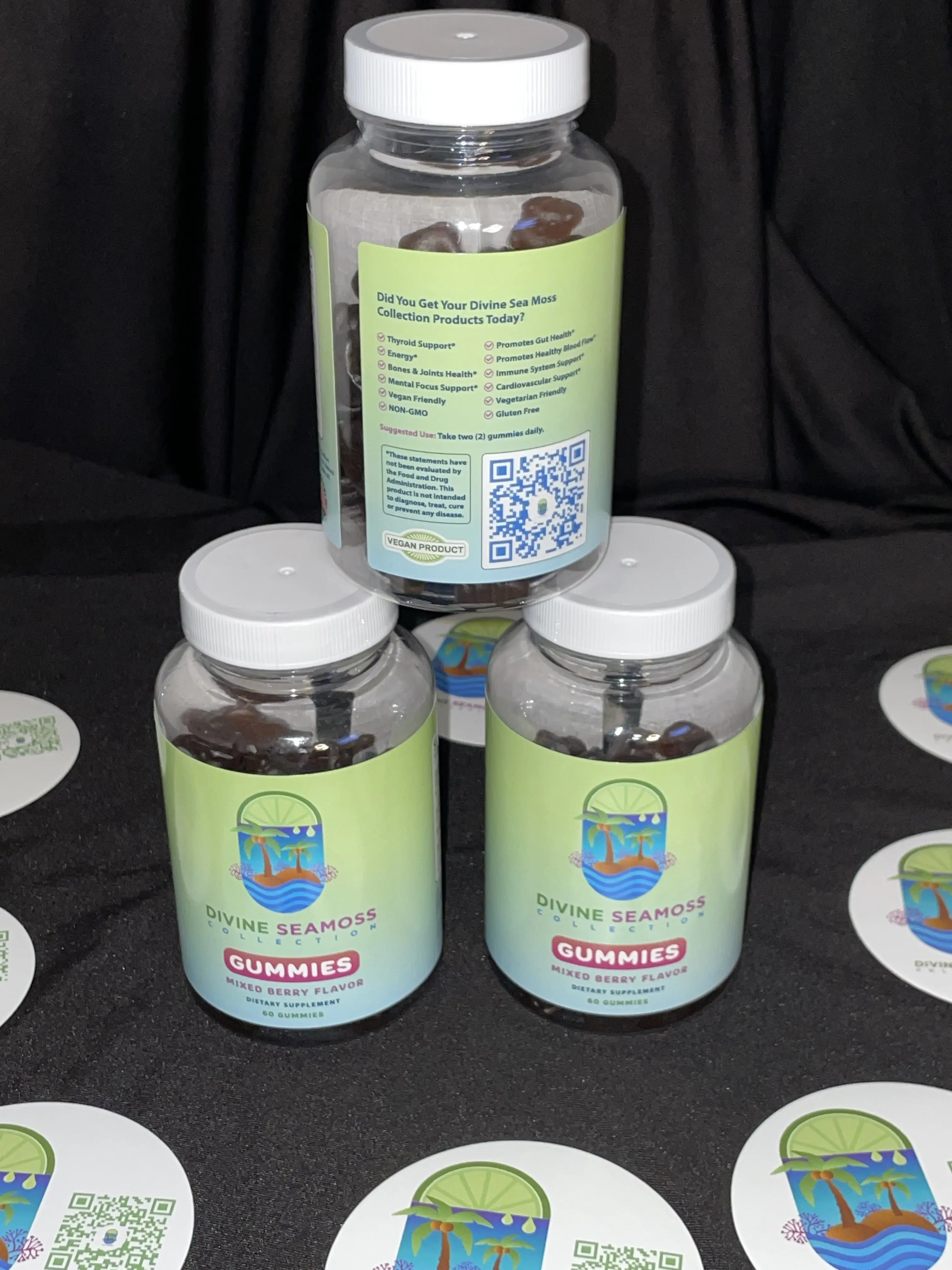Revitalize your wellness routine with the Divine Sea Moss Collection Vegan Gummies. Packed with Sea Moss, Burdock Root, and Bladderwrack, these organic gummies offer a burst of mixed berry flavor in every bite.