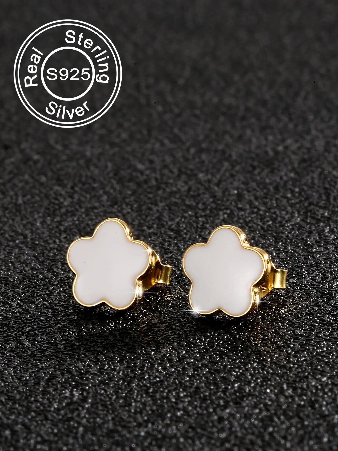 5. S925 Sterling Silver Four-leaf Clover Design Stud Earrings, Fashionable Stud Earrings for Women & Girls, Trendy All-match & Exquisite Jewelry for Birthday Gift, Flower Stud Earrings