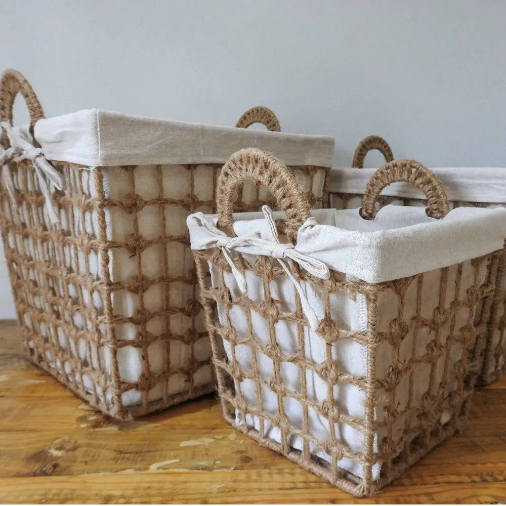 Enhance your living space with our Square Hemp Tied Wire Basket, designed to elevate your home decor. Featuring a beautiful hemp fabric inner, this versatile basket is perfect for organizing paper waste or adding a stylish touch to your nursery.