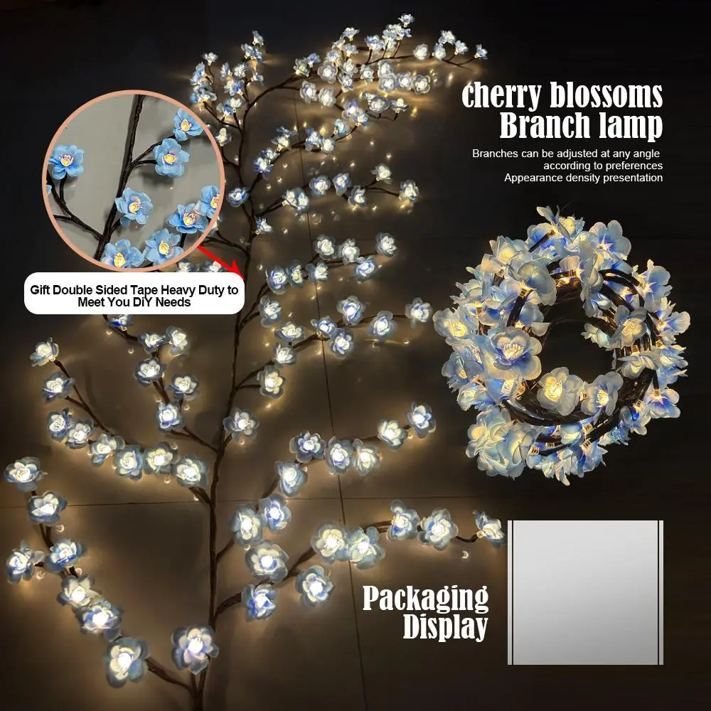 USB Powered 96-LED Artificial Magic Cherry Blossom Branch Light, 8-Lighting Modes, Flexible DIY Decorative Rattan Light for Home, Outdoor, Garden, Lawn Decoration