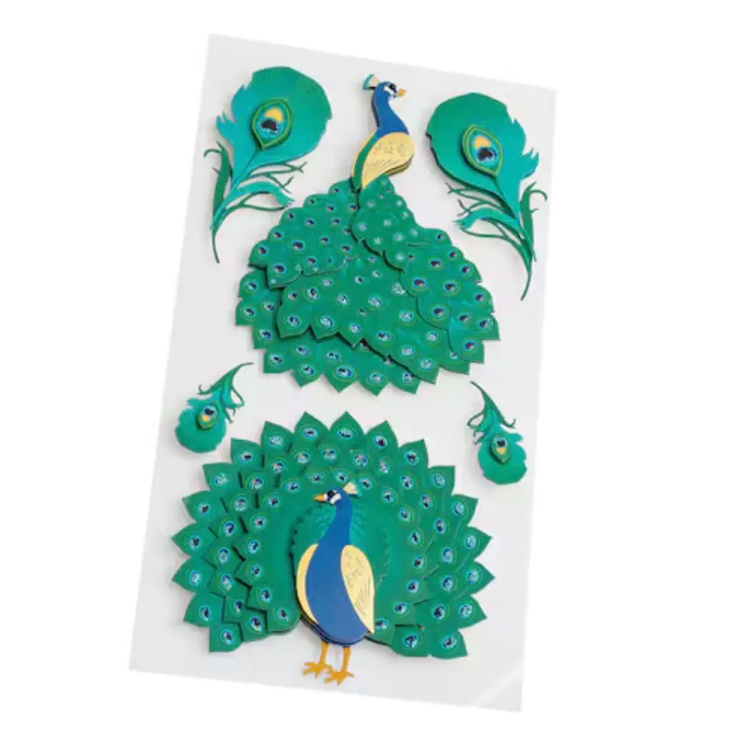 Recollections Peacock Stickers for Scrapbooking 6pc, Green and Blue Color Scheme