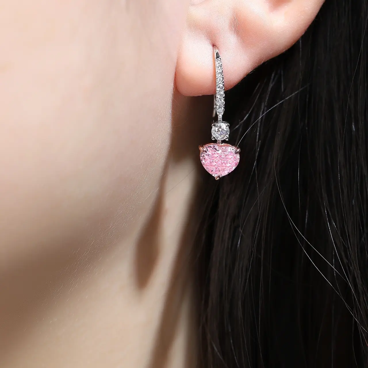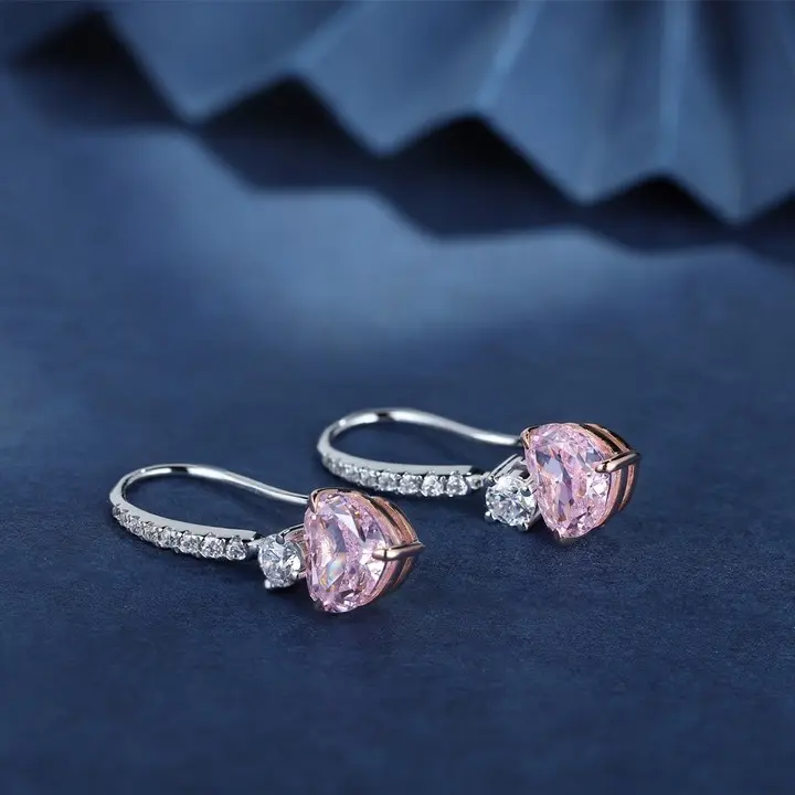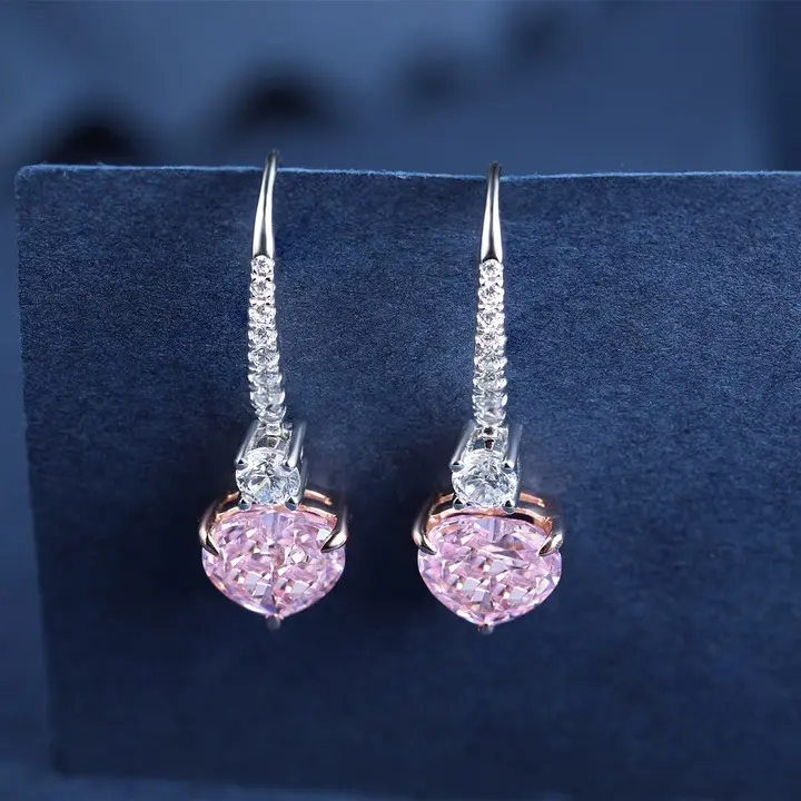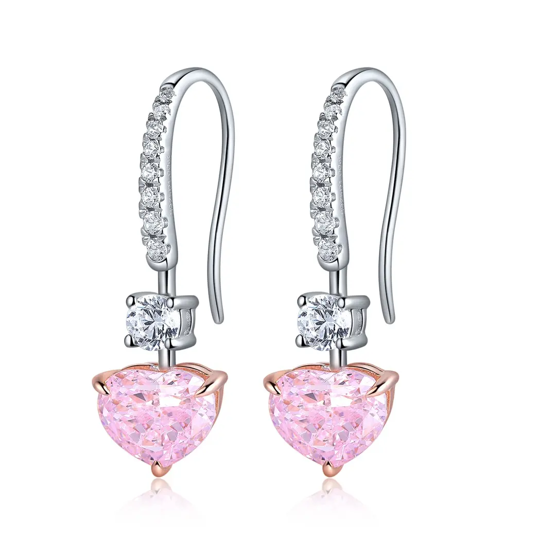 STONE PRECIOUS presents these elegant 1.0ct*2 pink diamond earrings, perfect for weddings, anniversaries, and Christmas presents. Crafted with sterling silver and adorned with zircon lab diamonds in a romantic heart cut design.