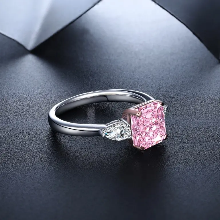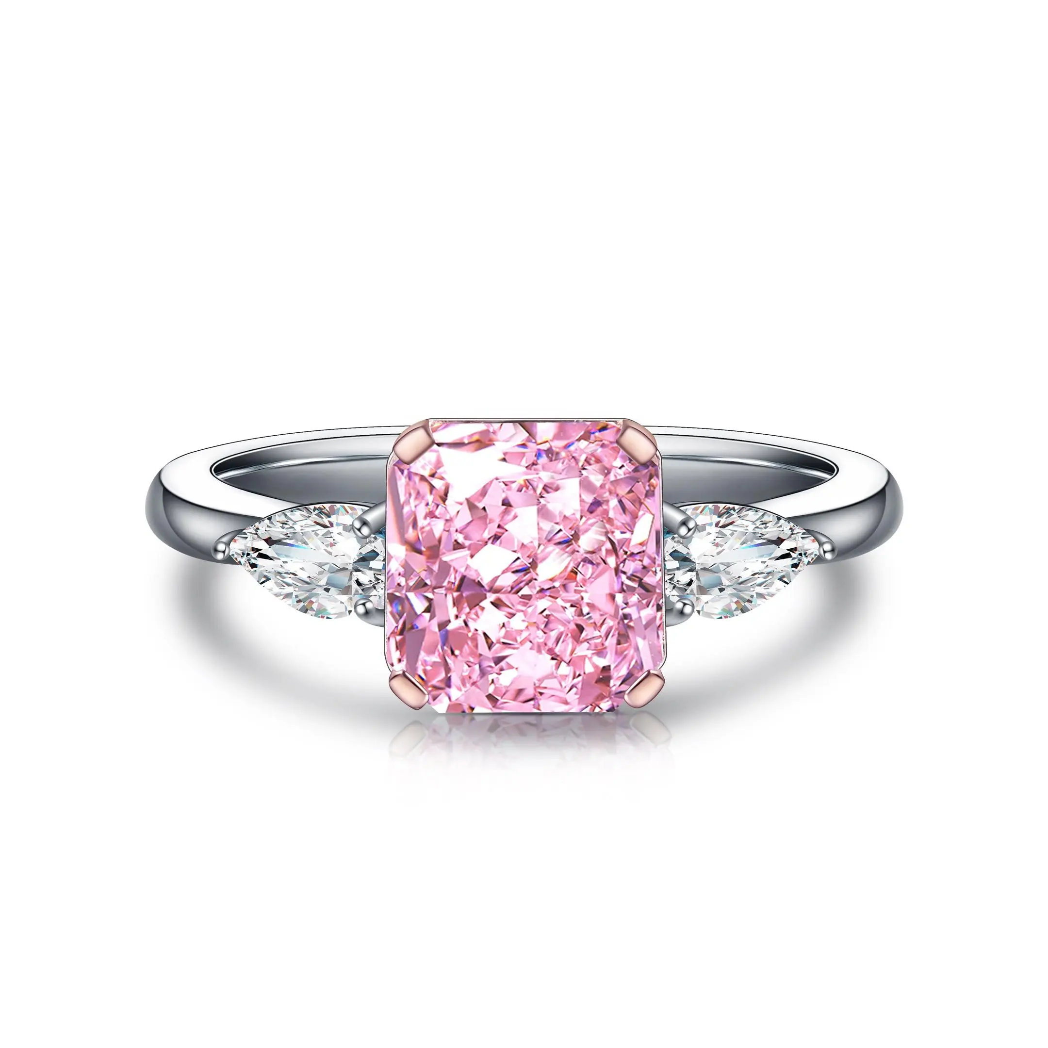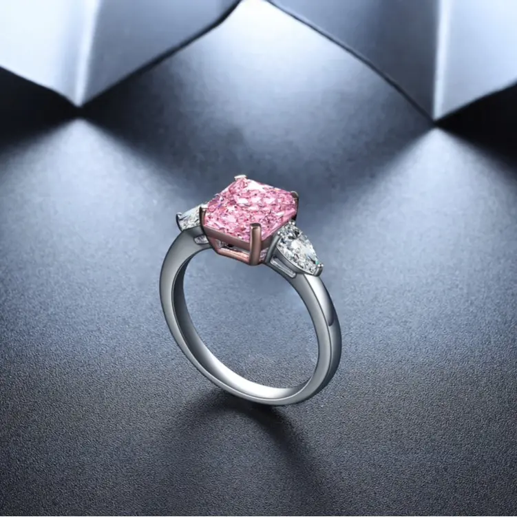 STONE PRECIOUS,2.0ct pink diamond ring.proposal,engagement,anniversary,Christmas present.sterling silver romantic ring with zircon lab diamond,radiant cut.