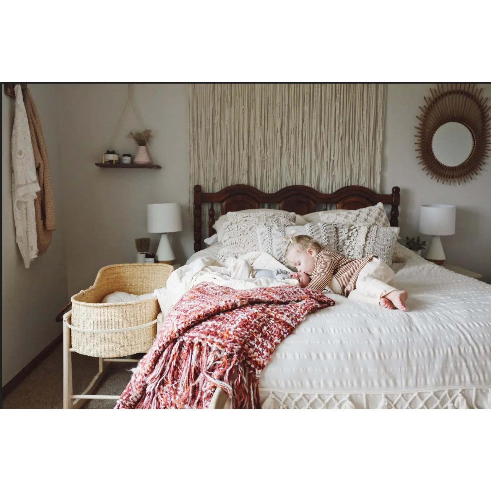 We call our bassinets, "Nature's Bassinets", as they are completely handmade with dried natural elephant grass. Elephant grass is similar to hardened hay. Each basket takes several days to weave from start to finish. This is a very difficult completely handwoven craft, as a result patterns and natural dyeing may vary slightly.