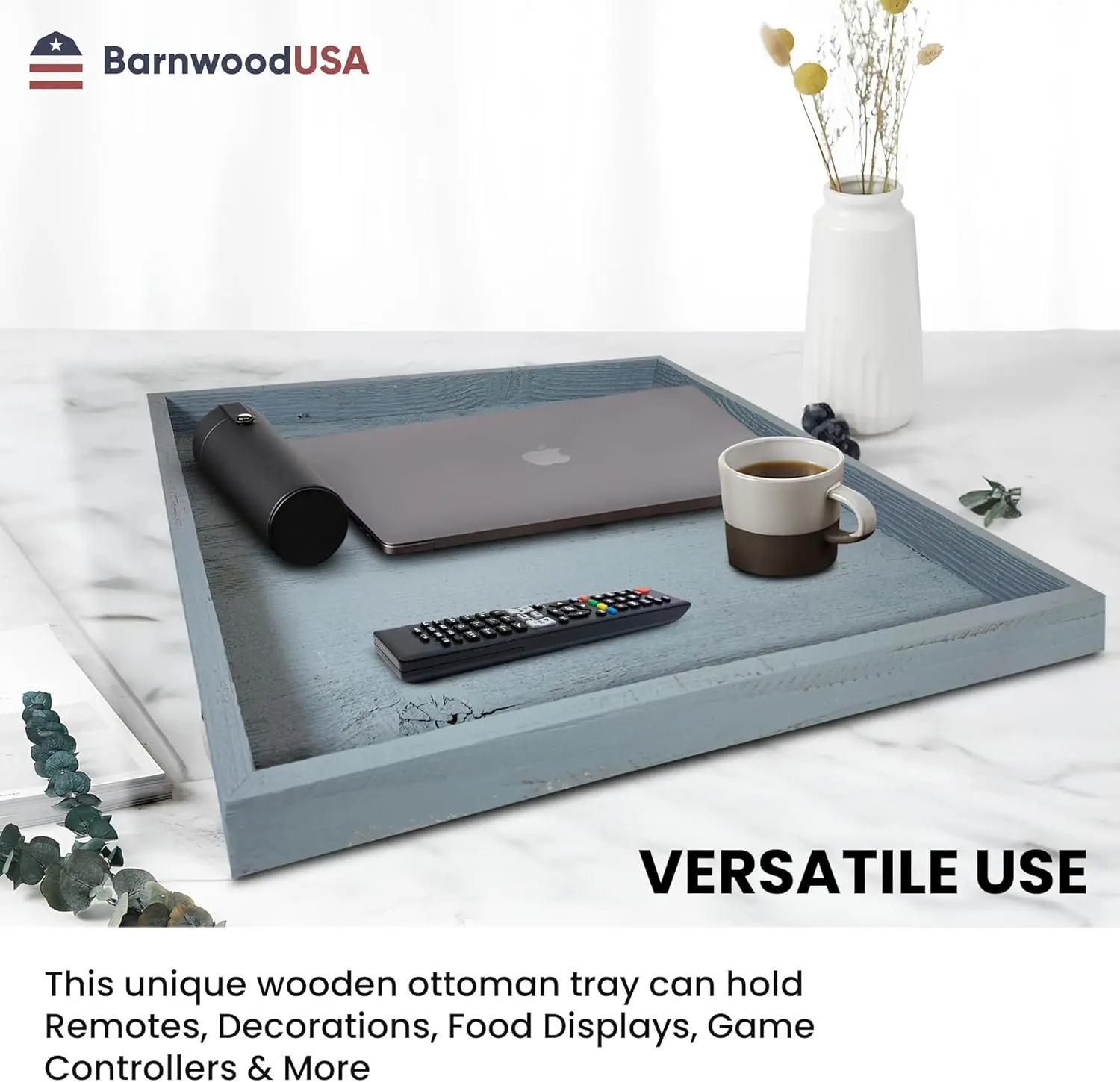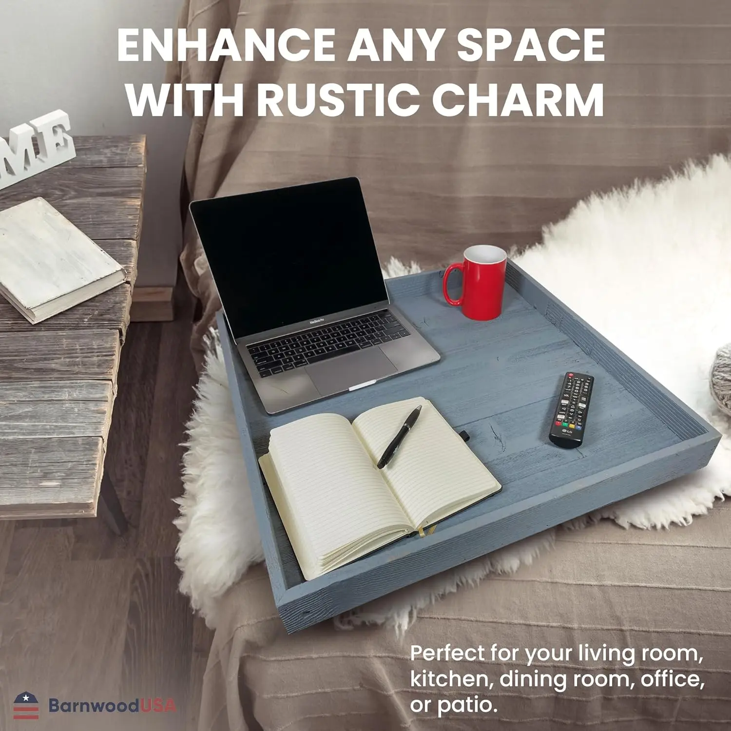 ·MADE IN USA: Proudly crafted and sourced in Oklahoma, our coffee table tray embodies quality and climate consciousness. By choosing each Barnwood ottoman and table topper, you're supporting American craftsmanship and reducing your environmental footprint.
