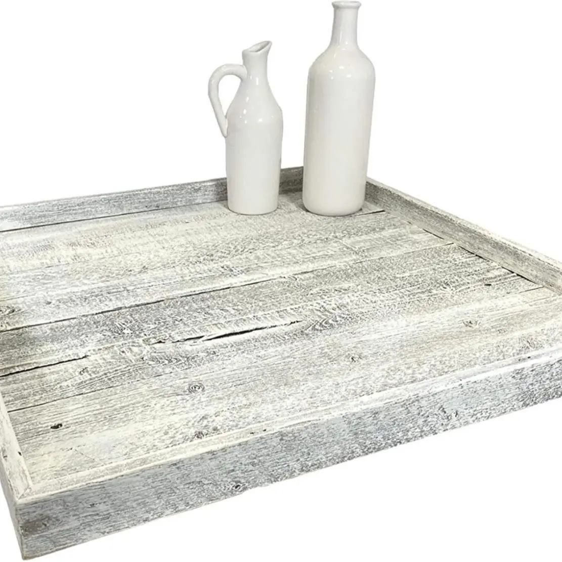 ·REAL RECLAIMED WOOD: Crafted from real reclaimed wood, BarnwoodUSA's large tray for ottoman and coffee tables will add character and charm to any space. Because our products are made from real wood, you may notice nail holes, knots, and splinters. These natural irregularities make each square serving tray one-of-a-kind.