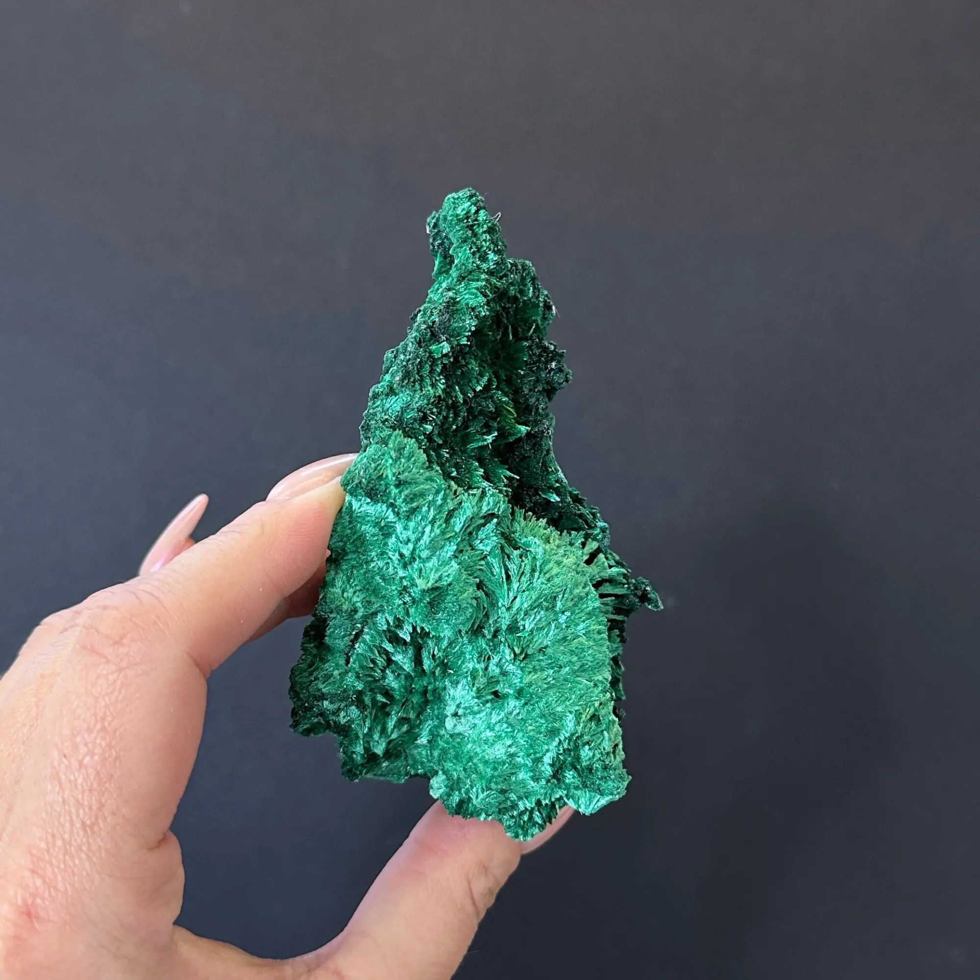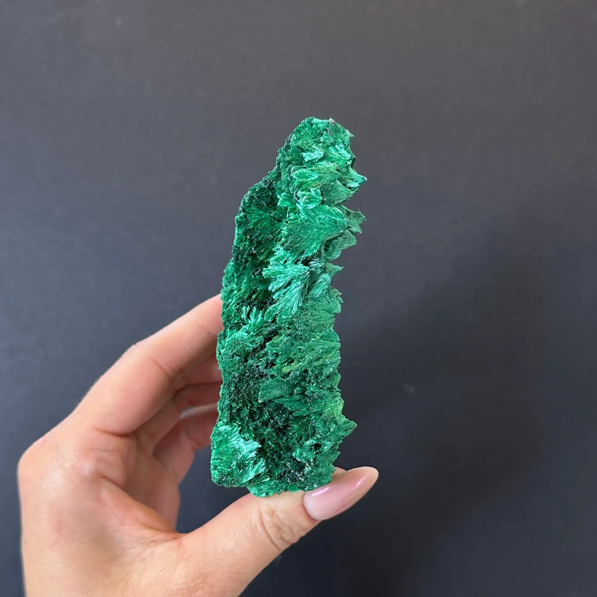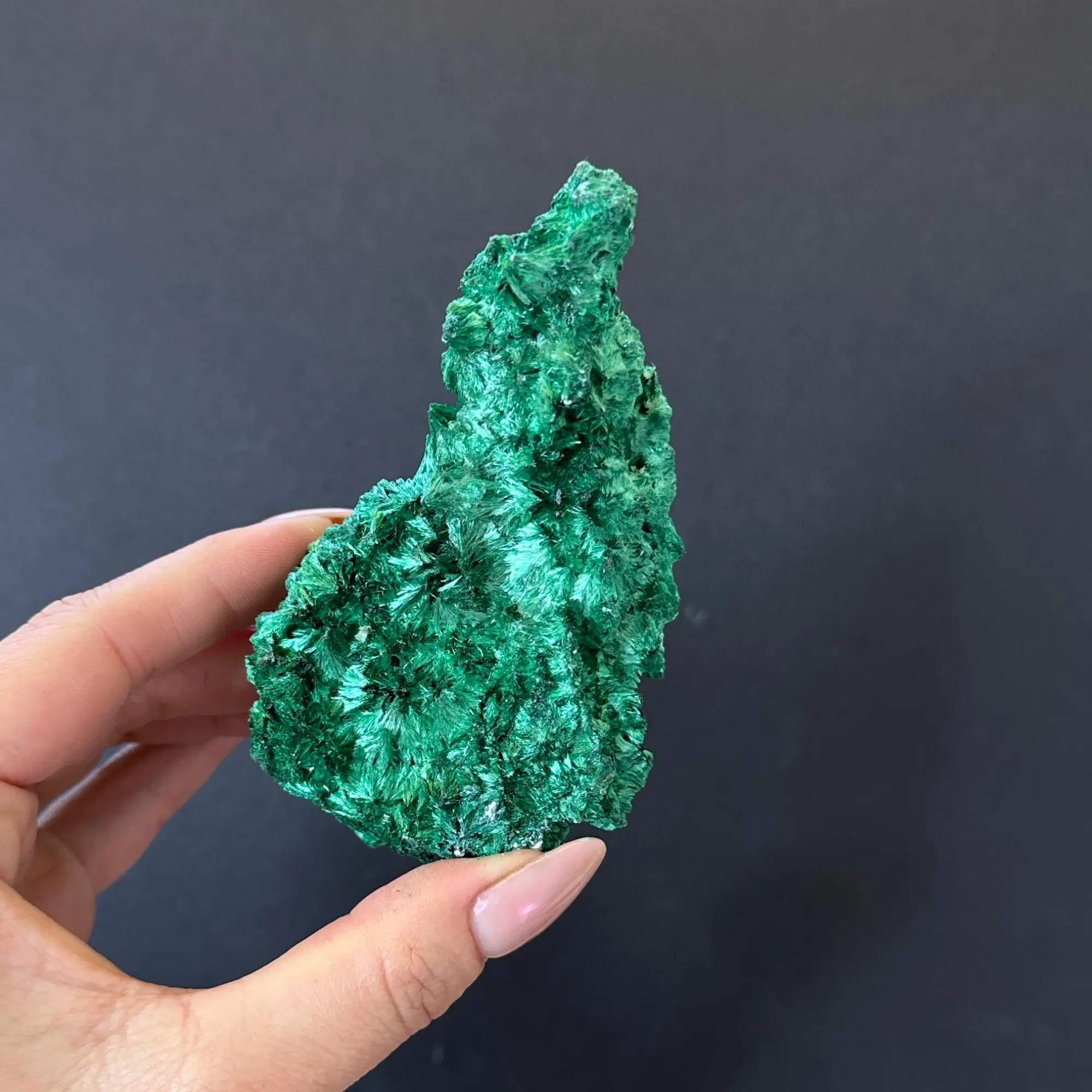 Fibrous Malachite all typically have a fan-like crystalline formation, creating those beautiful, flashy greens. This piece has two shades of green which makes it a very attractive .