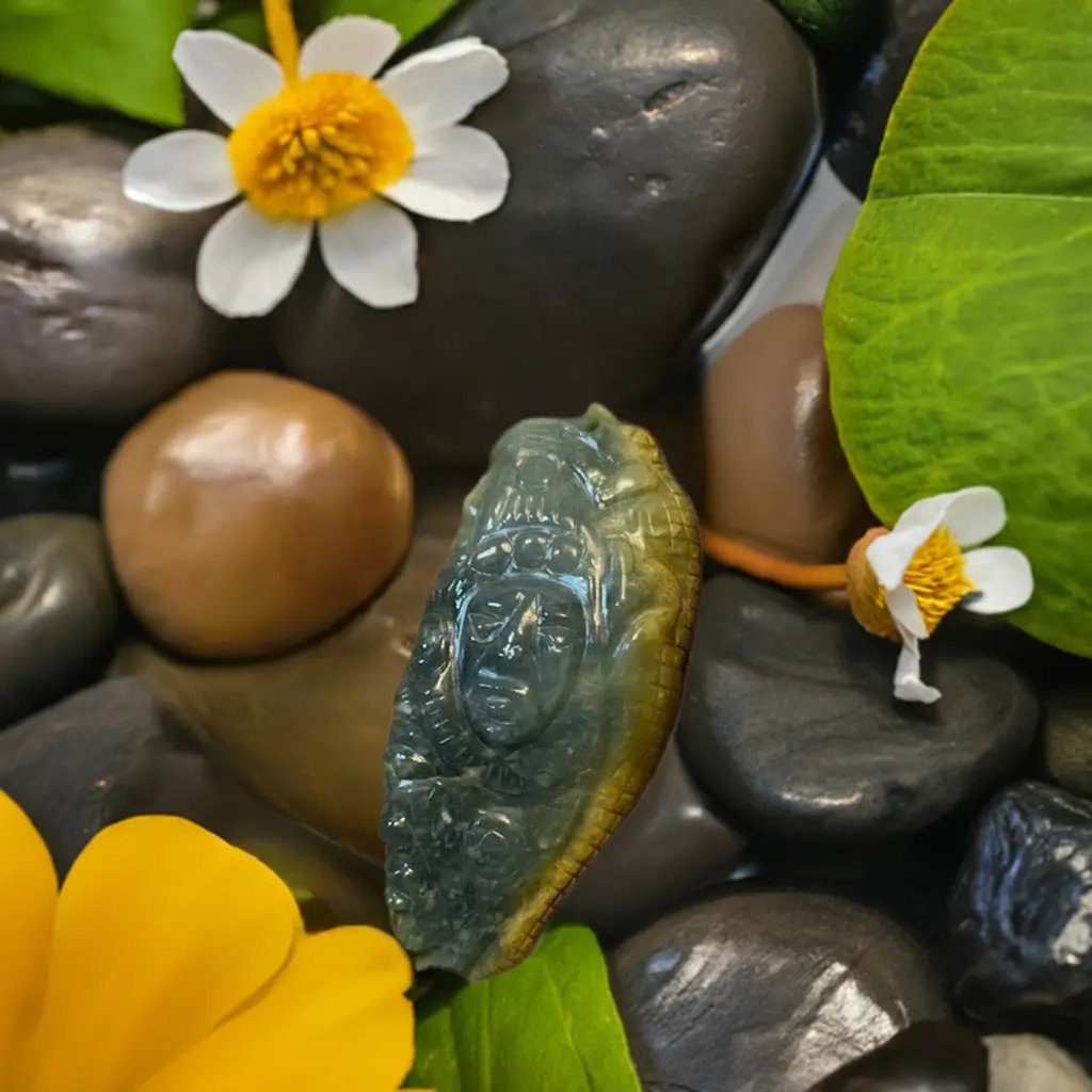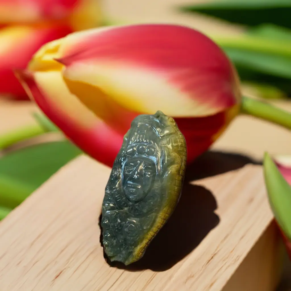 Made of High grade, Guatemalan Princessa jade, it features intricate details that capture the spirit of the alligator God, Ximiche. The alligator is a powerful symbol of strength and protection.
