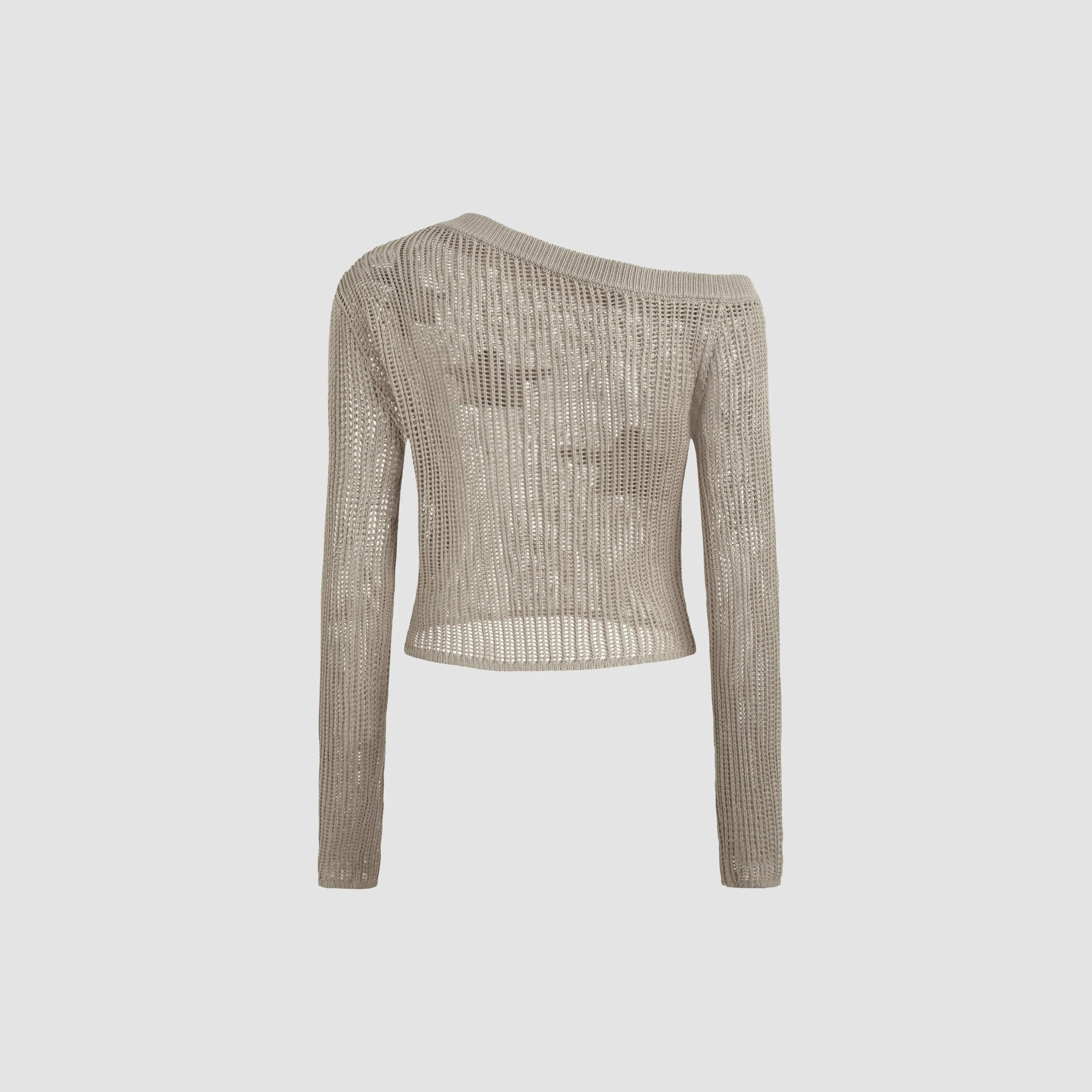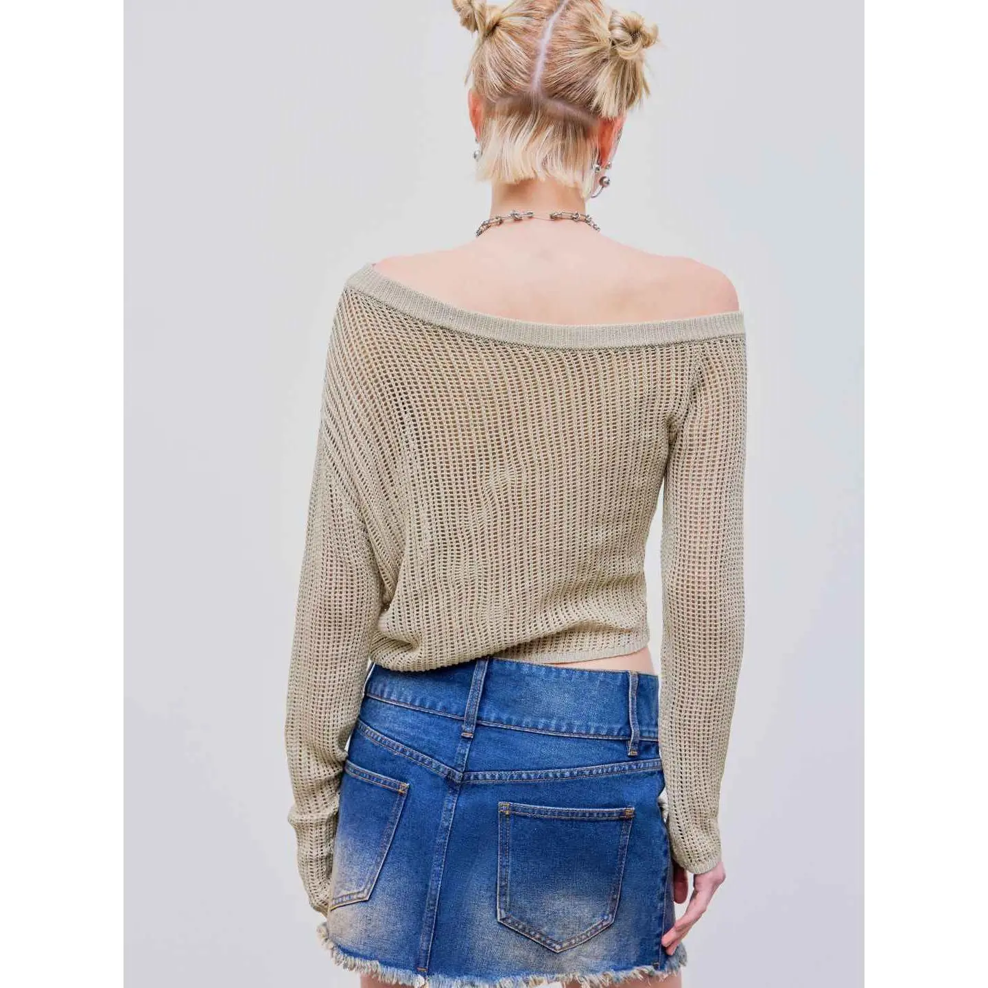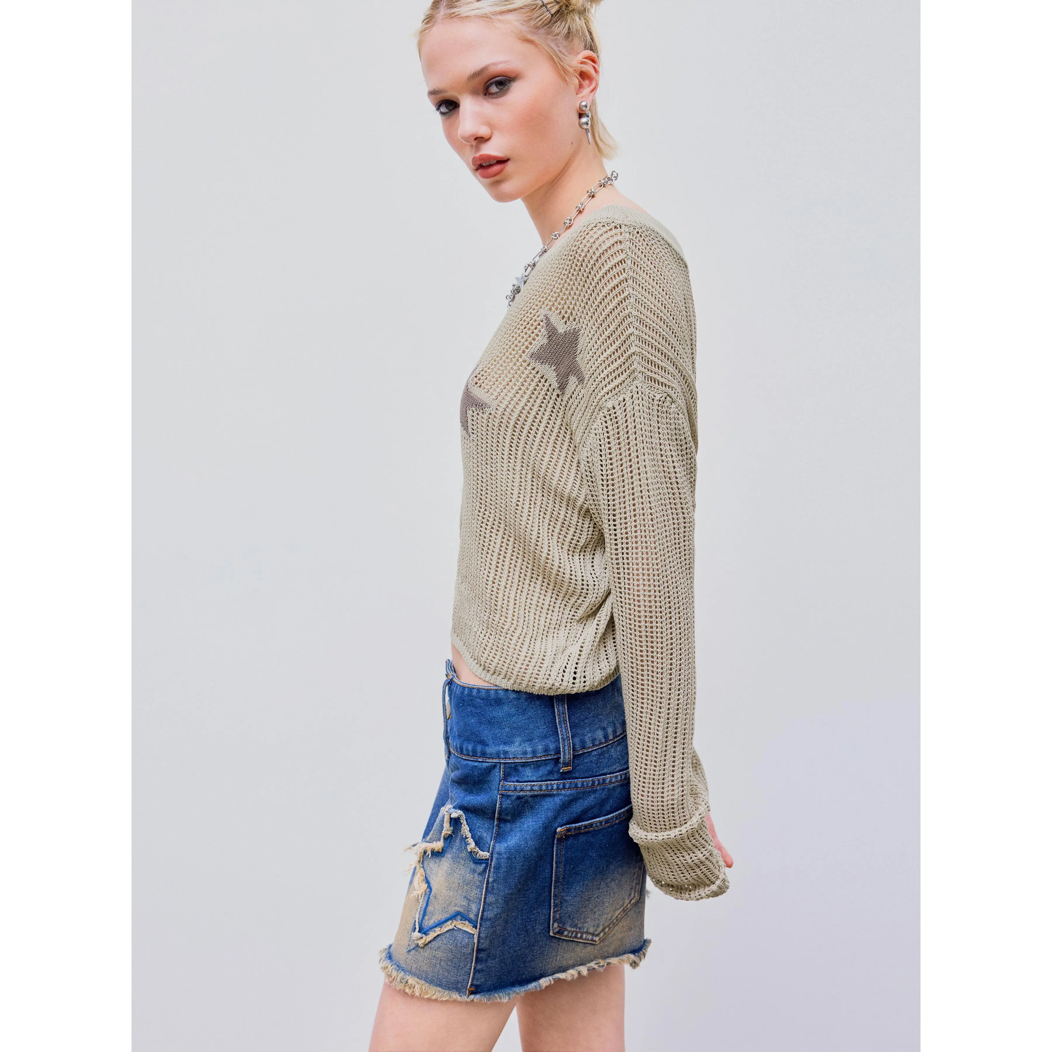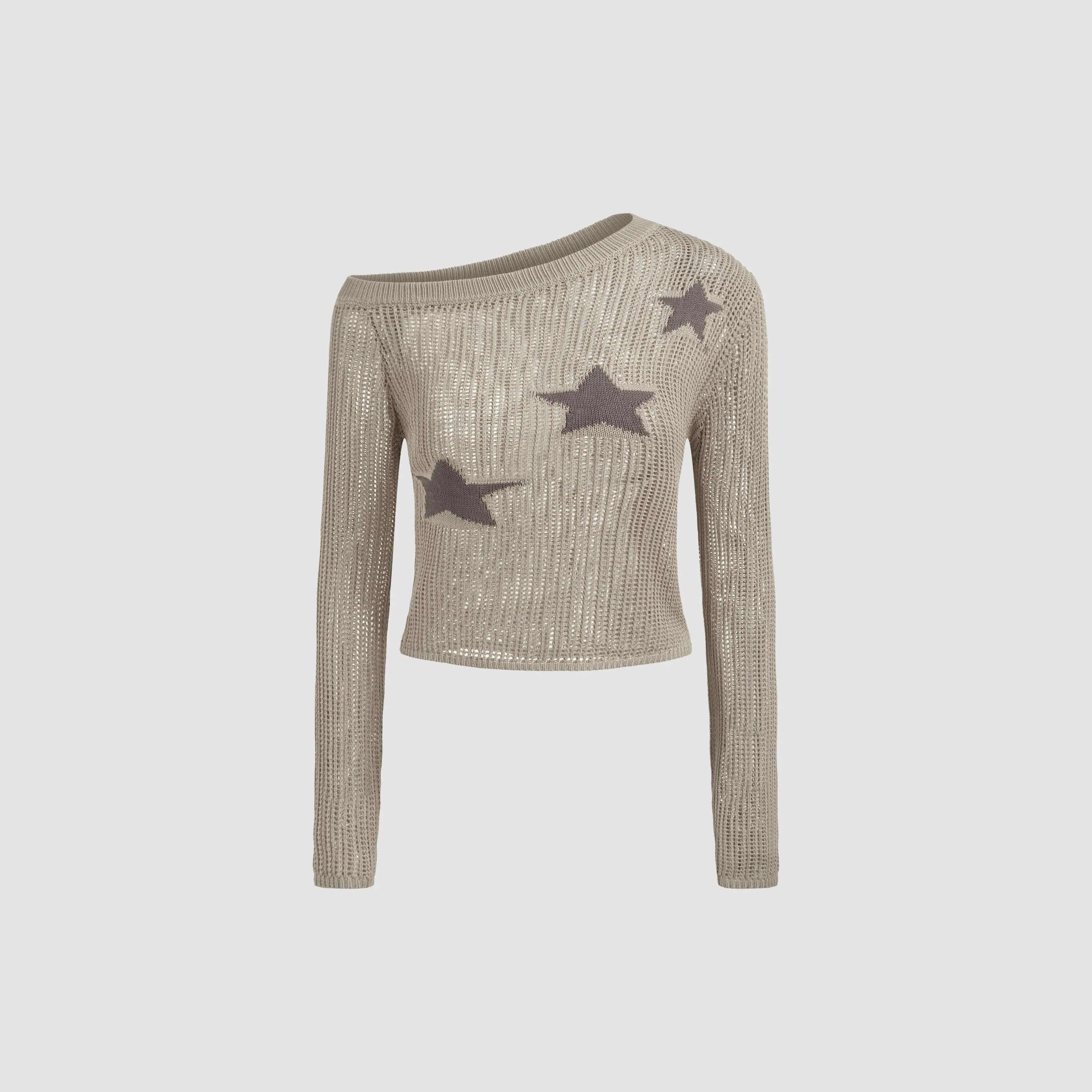 Cider [2 colors, size 2-10] Asymmetrical Neck Star Knitted Long Sleeve Top