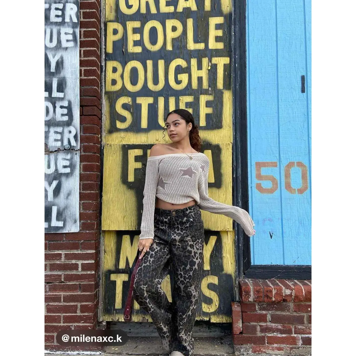This runs super small. I wanted this to fit really slouchy so I ordered a Large and it looks like a small. It’s a crop top too. Definitely doesn’t fit like the girl in the picture. I also ordered the over the knee slouchy white socks and they say “delivered” but I never received them. Thumbs down