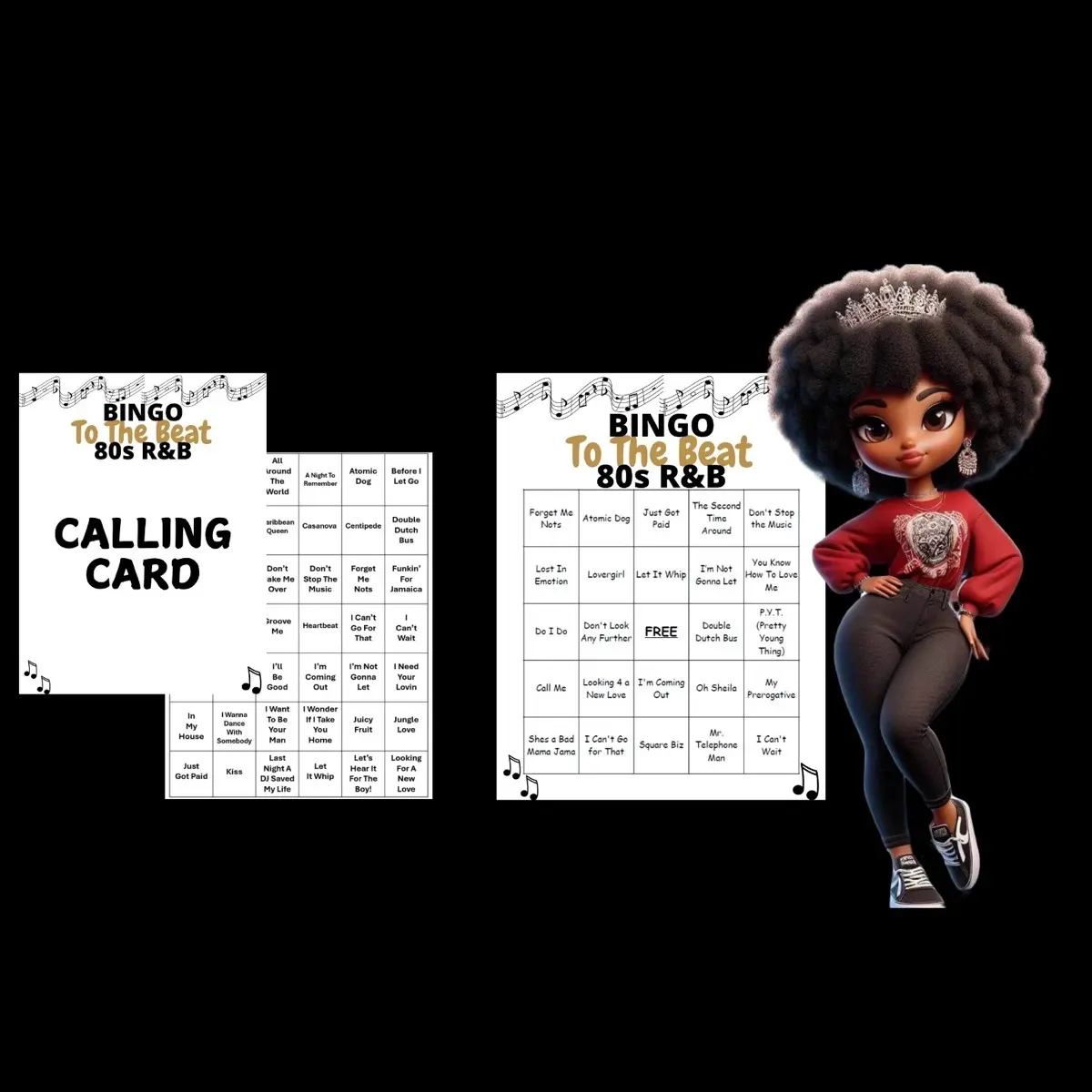 Need a fun and interactive activity for your next group gathering? Look no further! This Bingo game provides a fun and easy way to get everyone involved. Simply put the playlist on shuffle and enjoy dabbing your cards while dancing and singing to the best R&B music of the 80s. It's a great way to bring people together and have a blast in the process.
