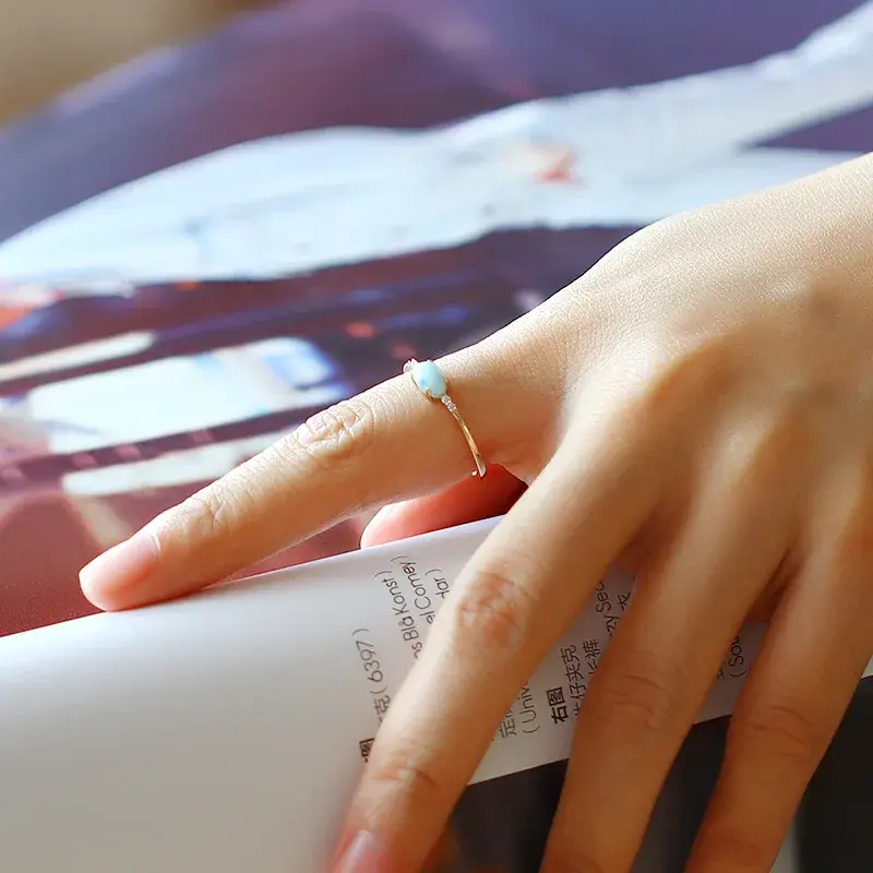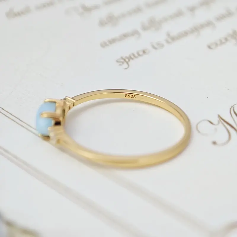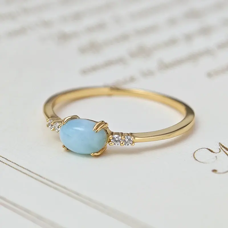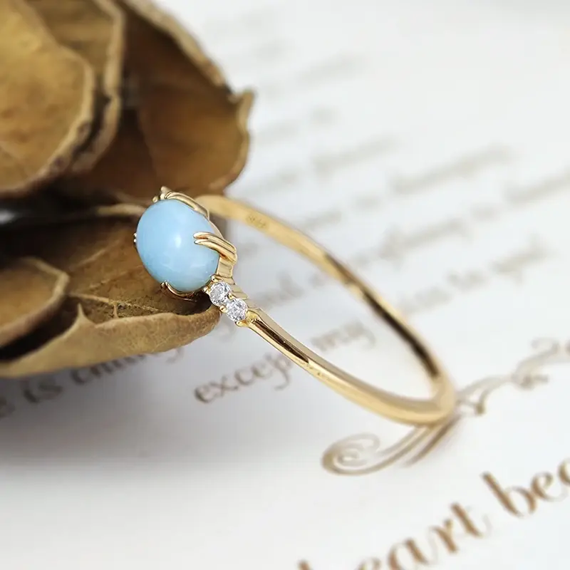 Elevate your style with this stunning natural Larimar and zircon ring. Crafted from 925 sterling silver and gold-plated, it features a unique sea pattern and a captivating blue stone, perfect for adding elegance to any outfit. Ideal for women who appreciate fine, handcrafted jewelry.