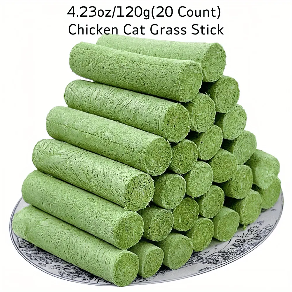 Product Description: Introducing our Chicken Flavored Cat Grass Sticks, the perfect blend of delicious flavor and functional benefits for your feline friend. Each pack contains 20 sticks, weighing a total of 4.23oz (120g), providing a generous amount of these highly palatable treats.