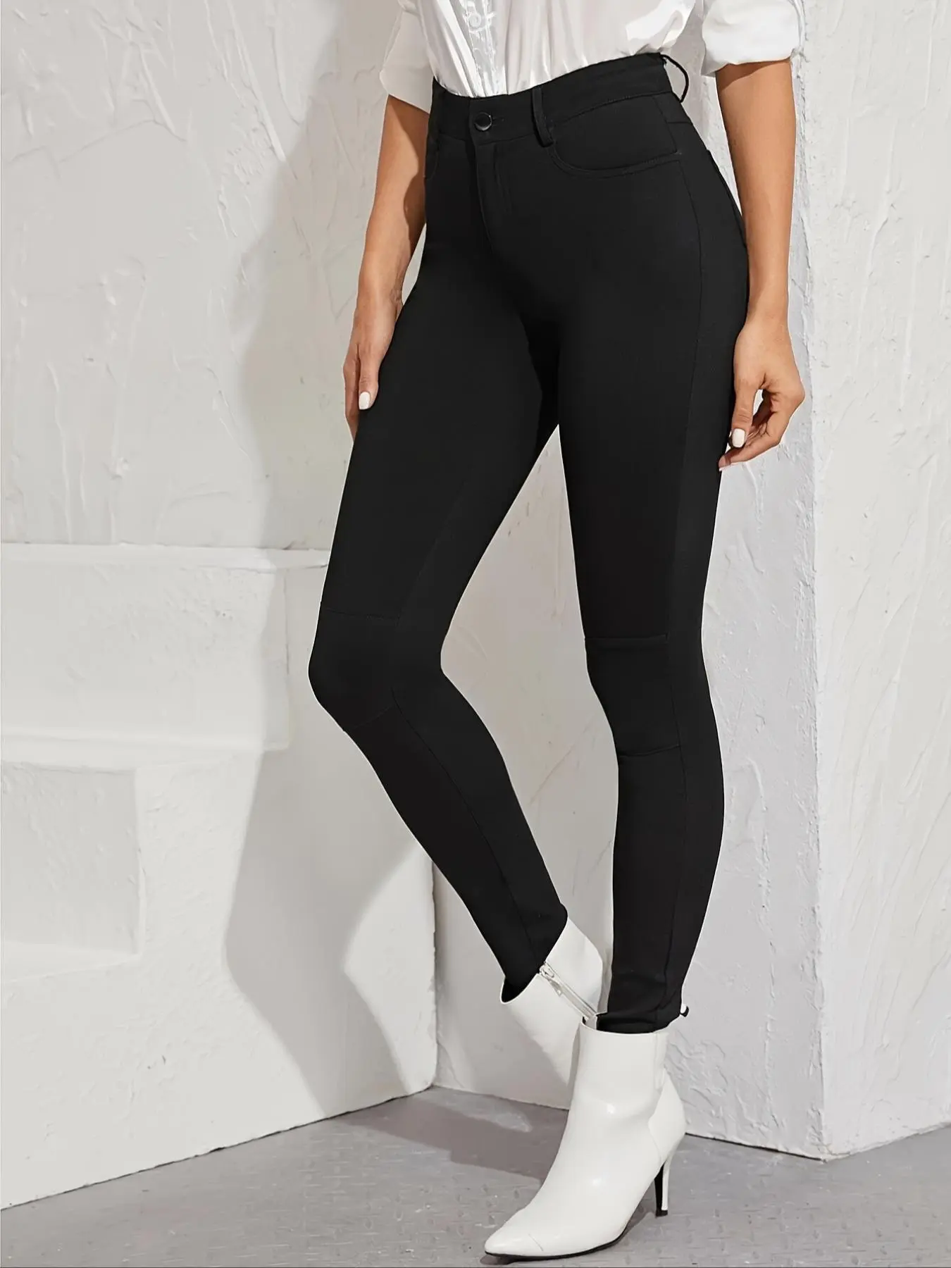 Women's Plain Button Pocket Skinny Stretchy Jeans, Elegant High Waist Denim Pants for Daily Wear, Ladies Bottoms for All Seasons