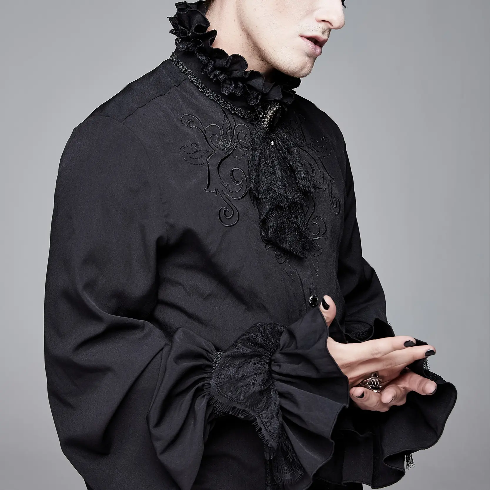 Get into the spirit of Halloween with this Men's Black Ruffle Shirt, perfect for a Vampire or Dracula costume or a gothic-inspired look.
