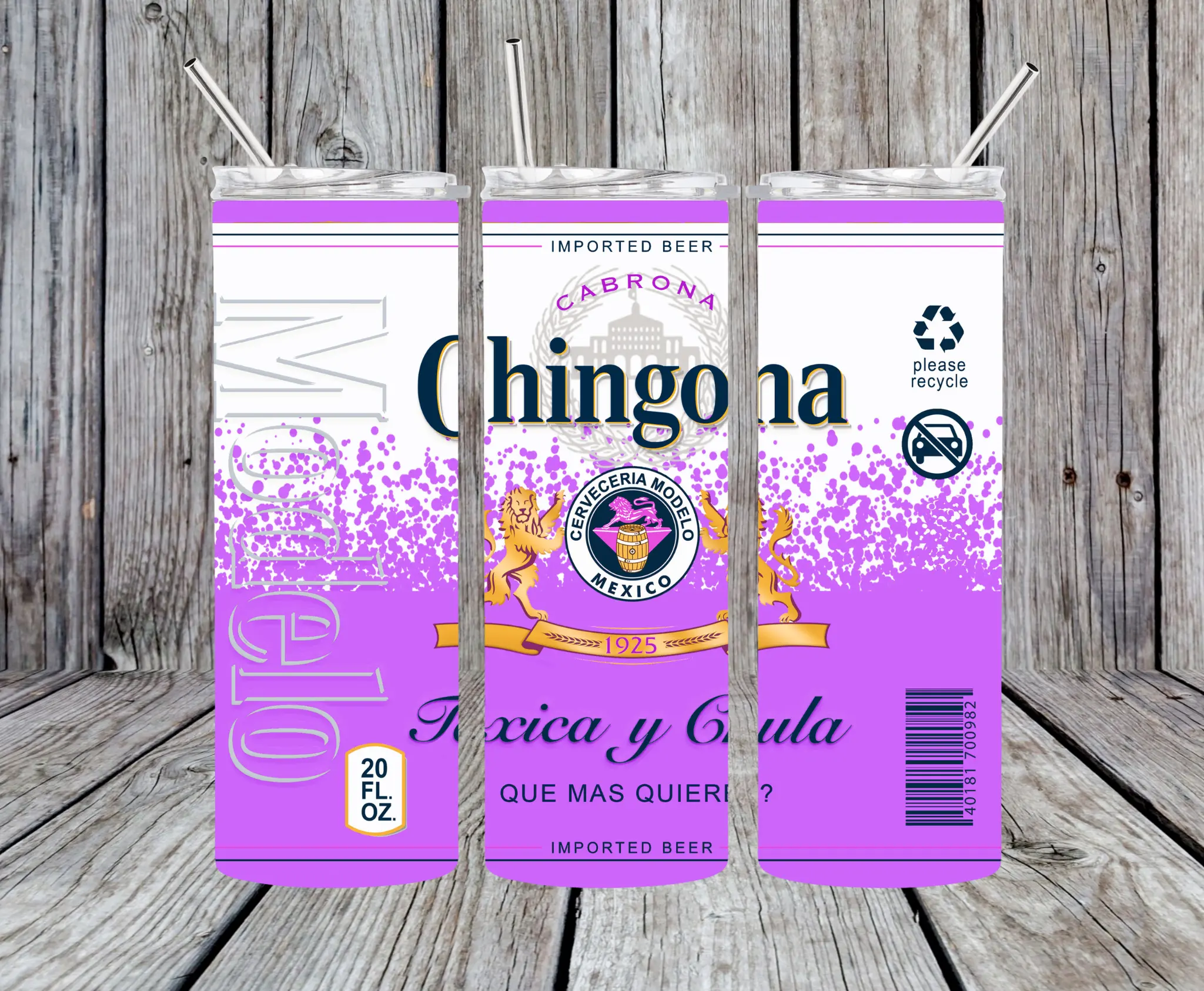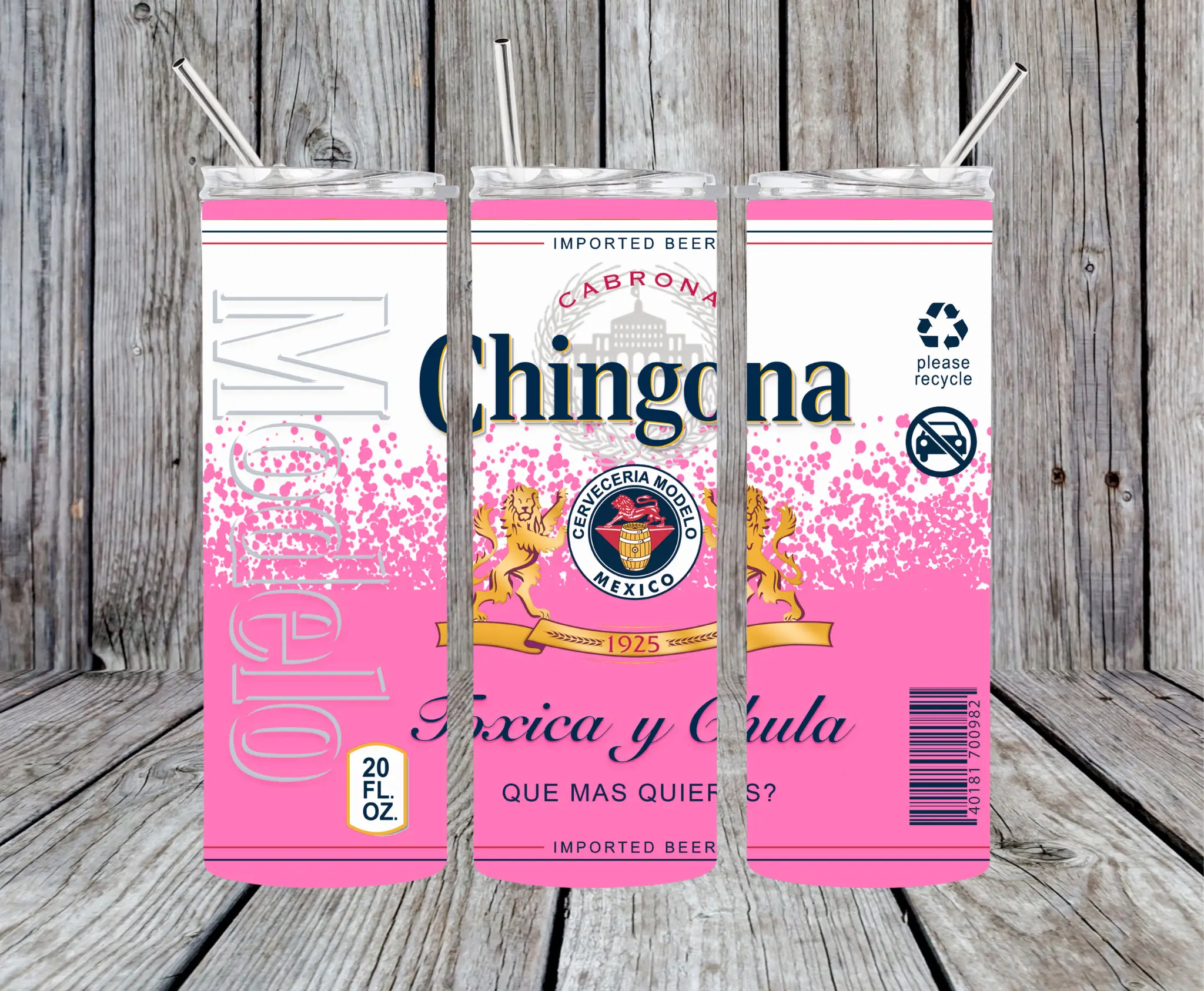 Elevate your beverage experience with the Modelo Chingona 20 oz Tumbler. This