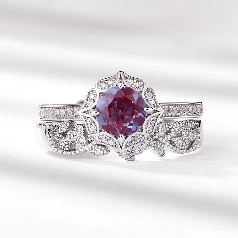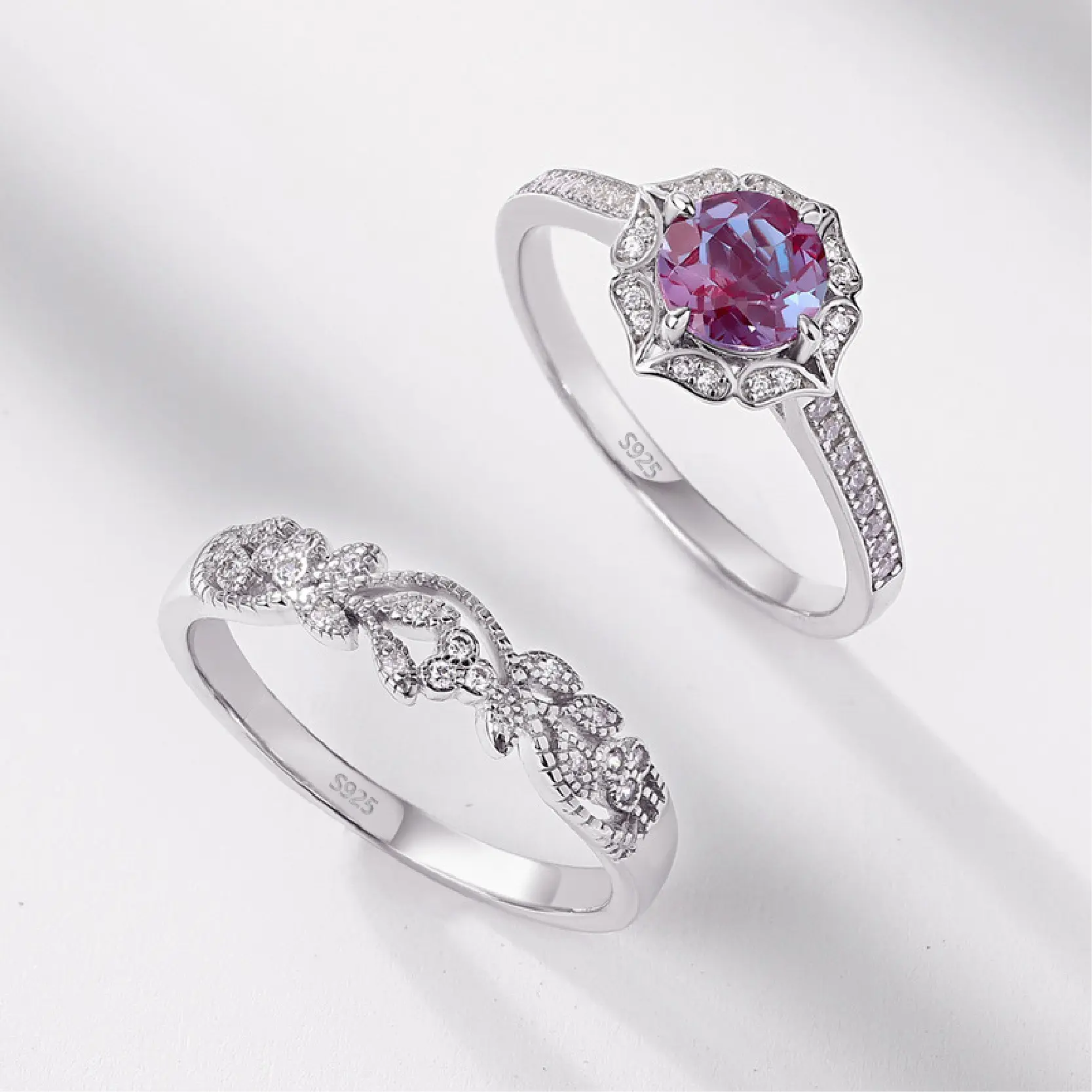 Mystic Twilight Synthetic Alexandrite Ring Color-changing lab gemstones in S925 Silver, Perfect Gift for Valentine's or unique jewelry fairy ring