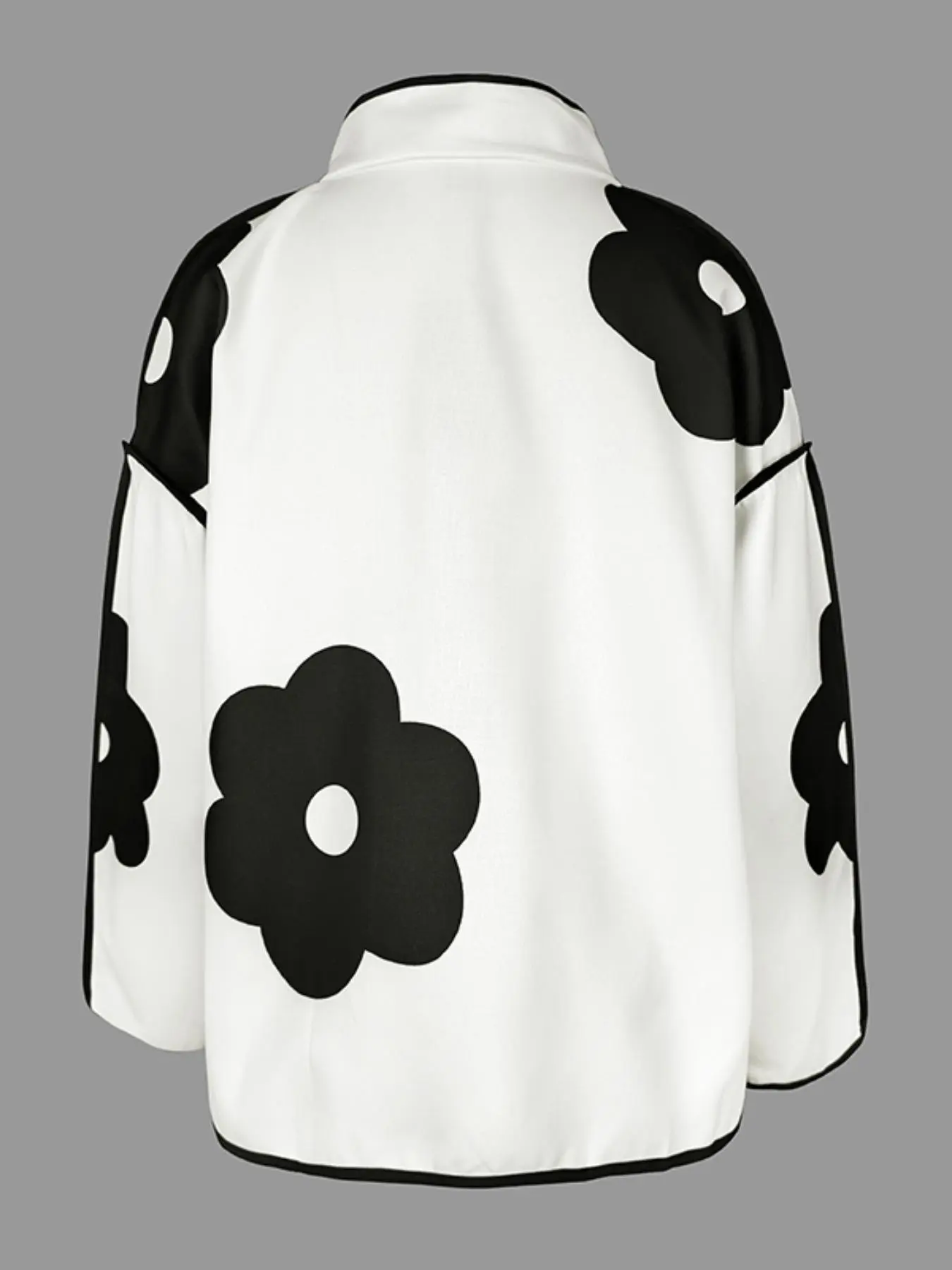 Women's Floral Print Contrast Binding Button Front Flap Detail Jacket, Elegant Stand Collar Drop Shoulder Long Sleeve Outerwear, Casual Fashionable Outerwear for Fall & Winter, Ladies Clothes for Daily Wear