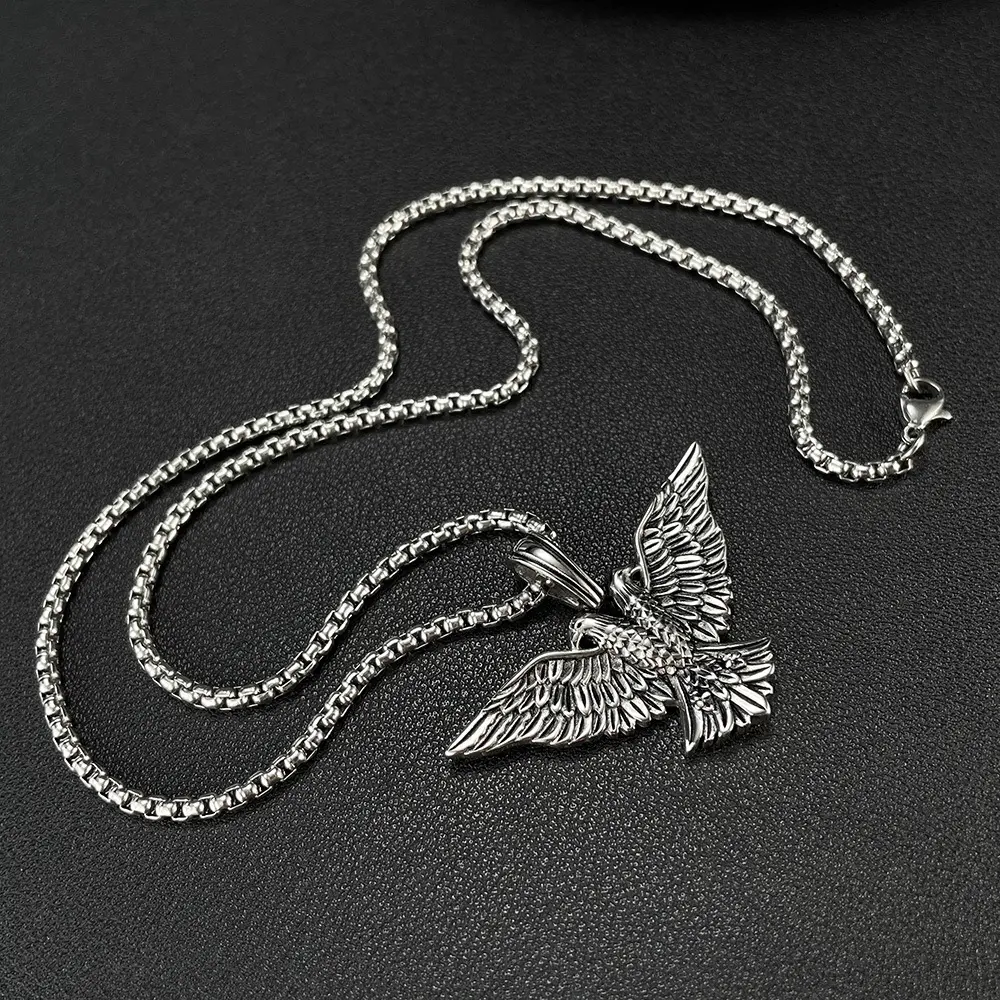 [Fashion Items] New Retro Double-Headed Eagle Pendant Necklace Personalized Hip-Hop Stainless Steel Necklace for Men