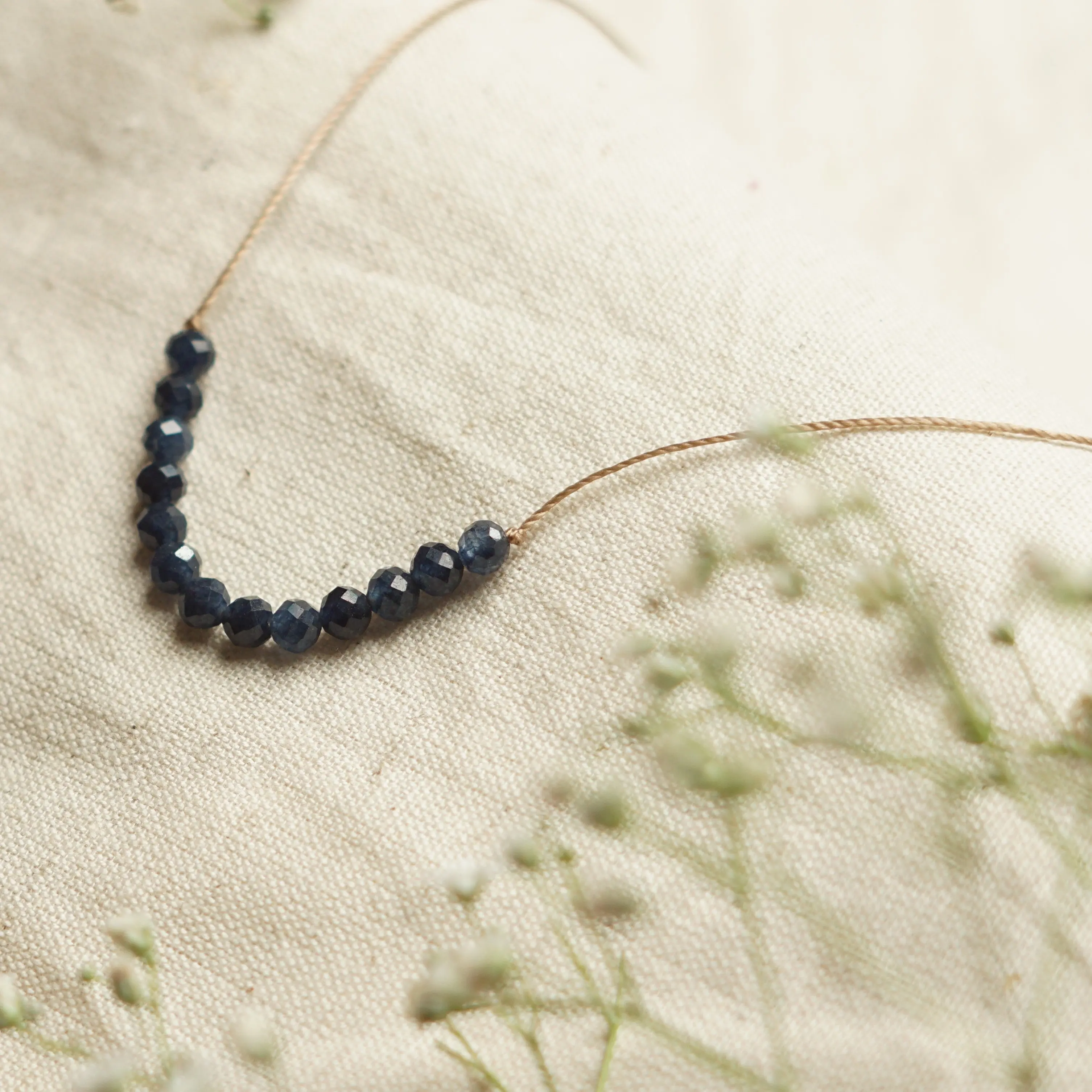 Casual, Minimal, everyday gemstone cord Necklace with adjustable Sterling silver lobster clasp Adjustable cord necklace 16”- 18” Made of Natural Gemstones. The Necklaces are simple and light weight. Each Necklace comes with a card with a watercolor Mandala art and healing properties of the crystal (as shown in photo) Each Necklace is handcrafted, and the gemstones are natural & unique so the order, size & shape of the gemstones will differ.