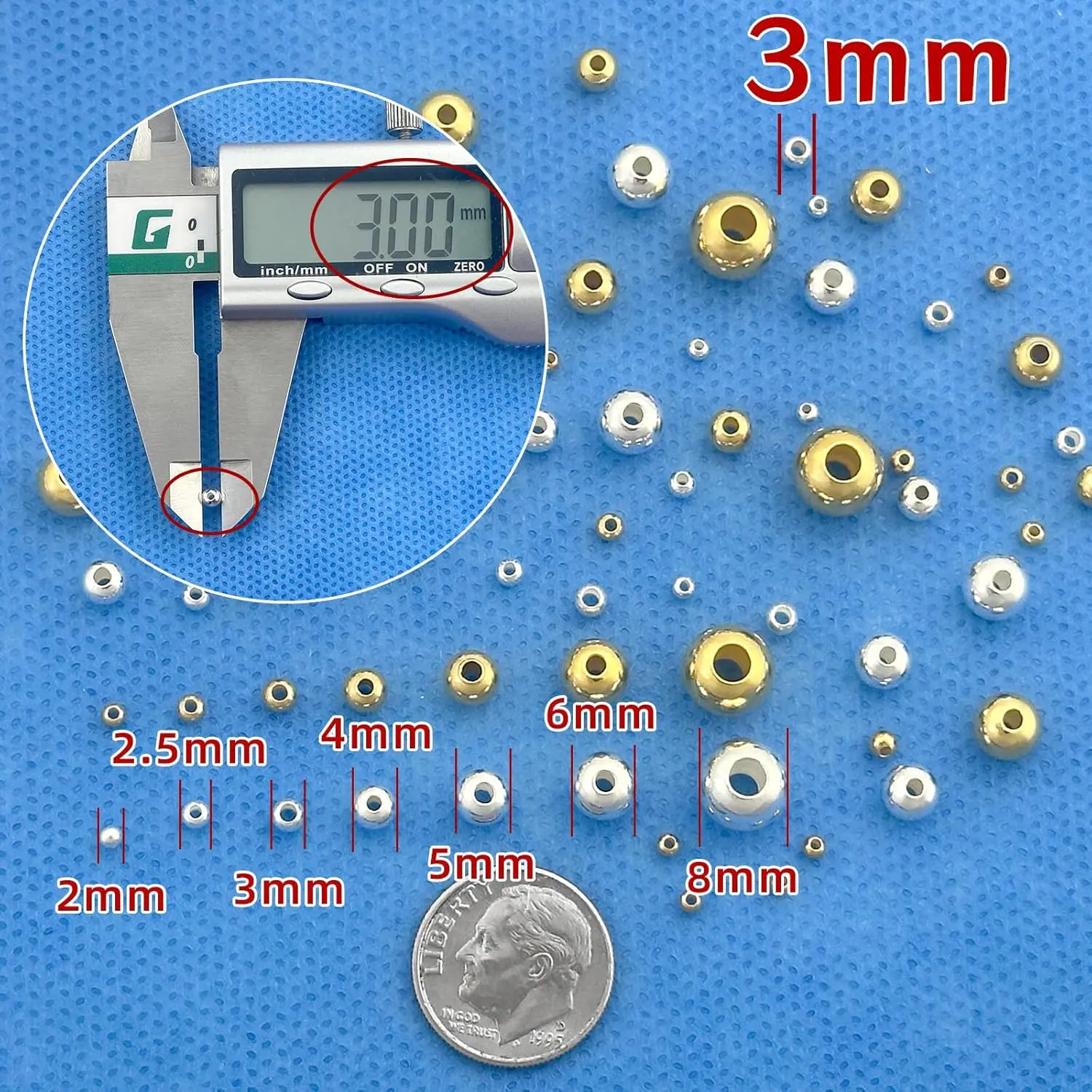 925 Sterling Silver Beads for Jewelry Making,Smooth Round Ball Beads Spacer Beads for Ring Necklace Earring Bracelets Making (Made in Italy 3mm)