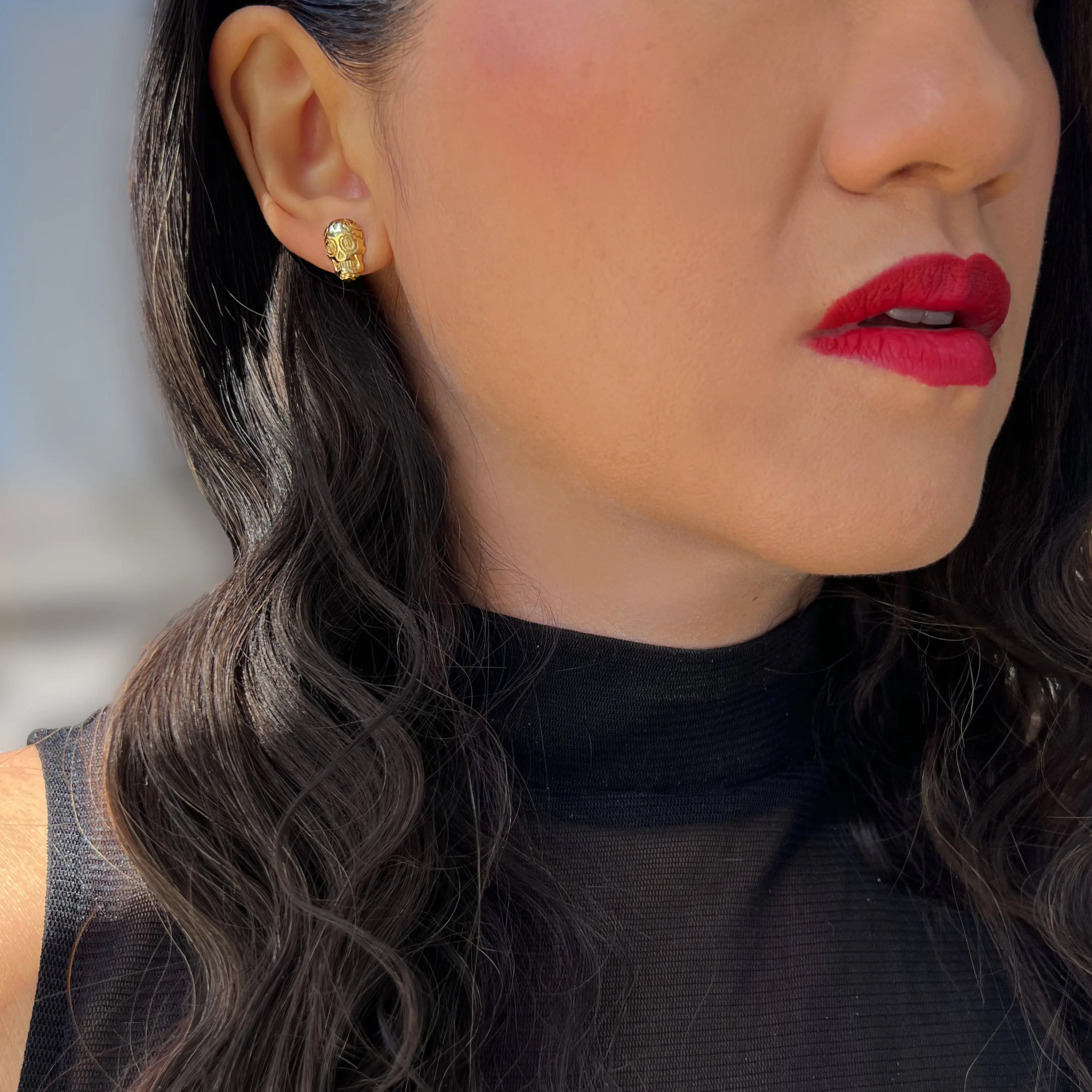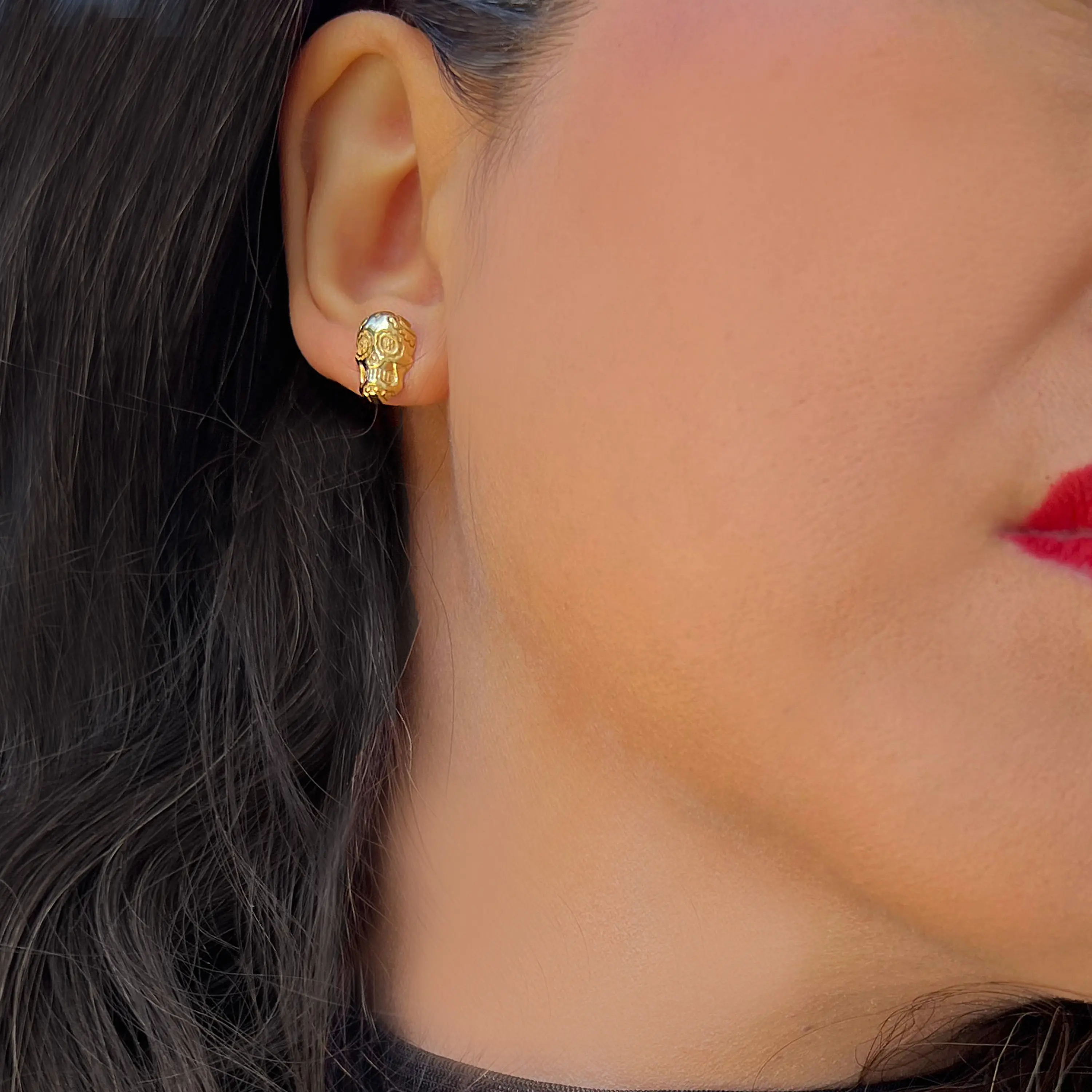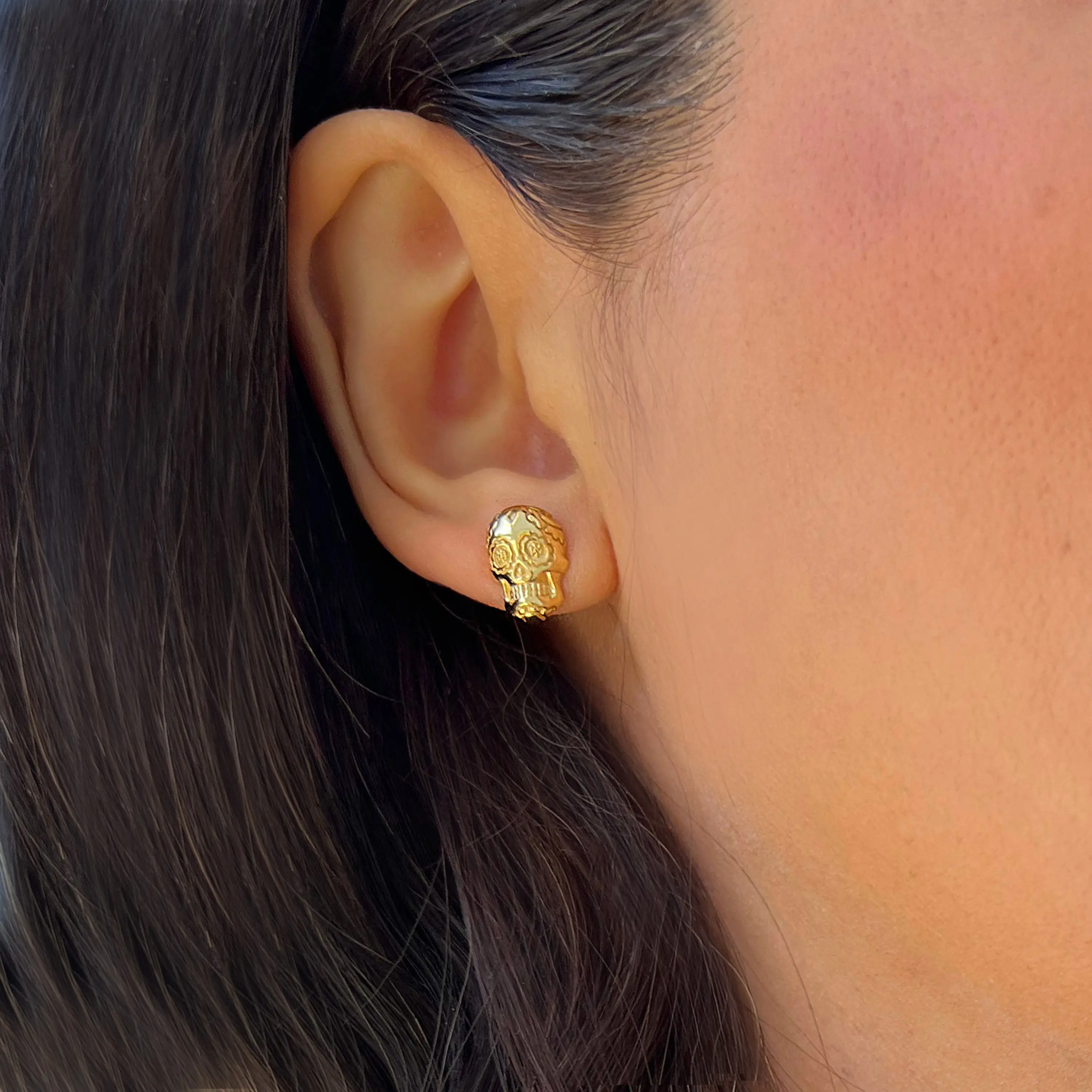 SONIA HOU Day of the Dead Skull Stud Earrings - 18K Gold Over Sterling Silver | S925 Dia De Los Muertos Chic Fashionable Exquisite Fashion Design