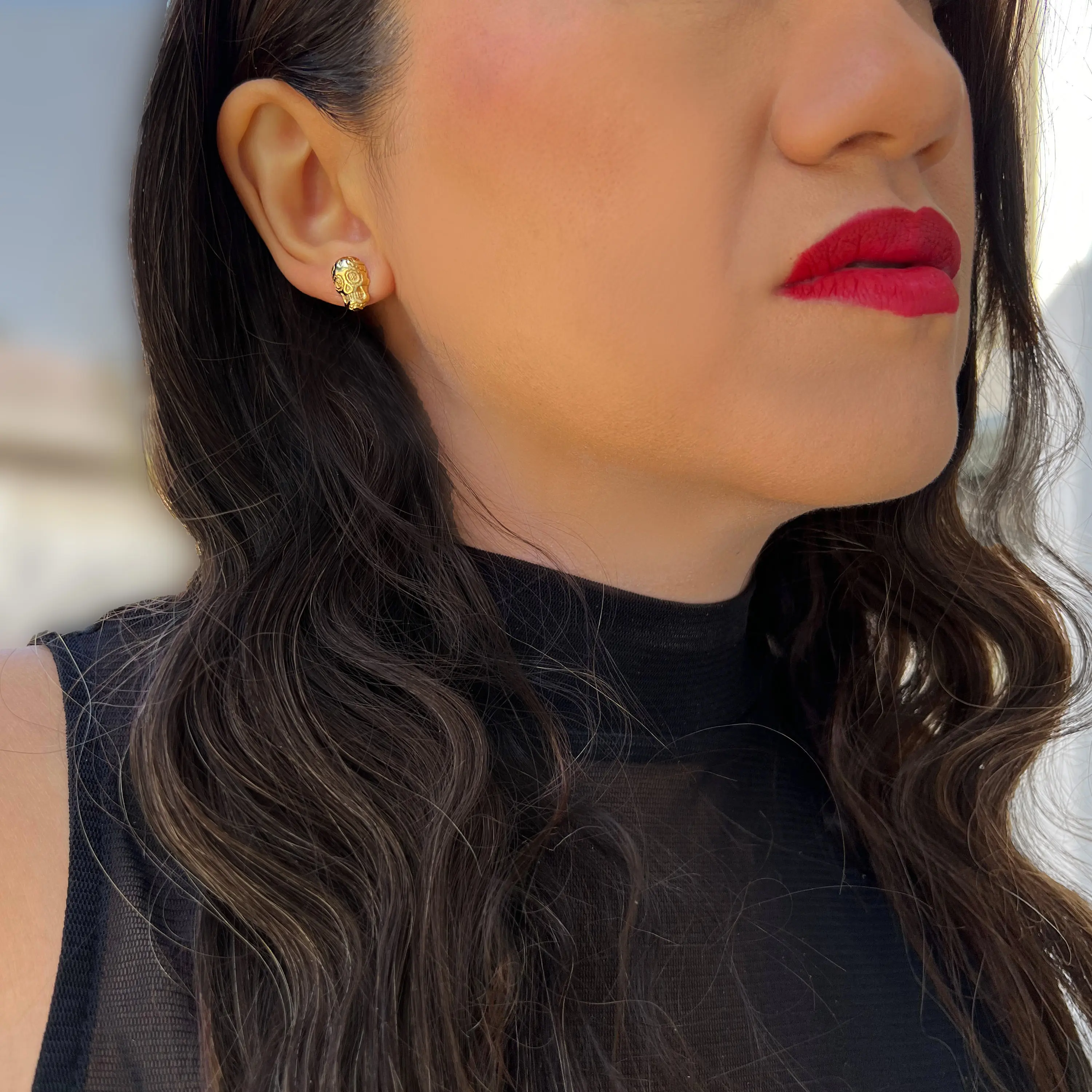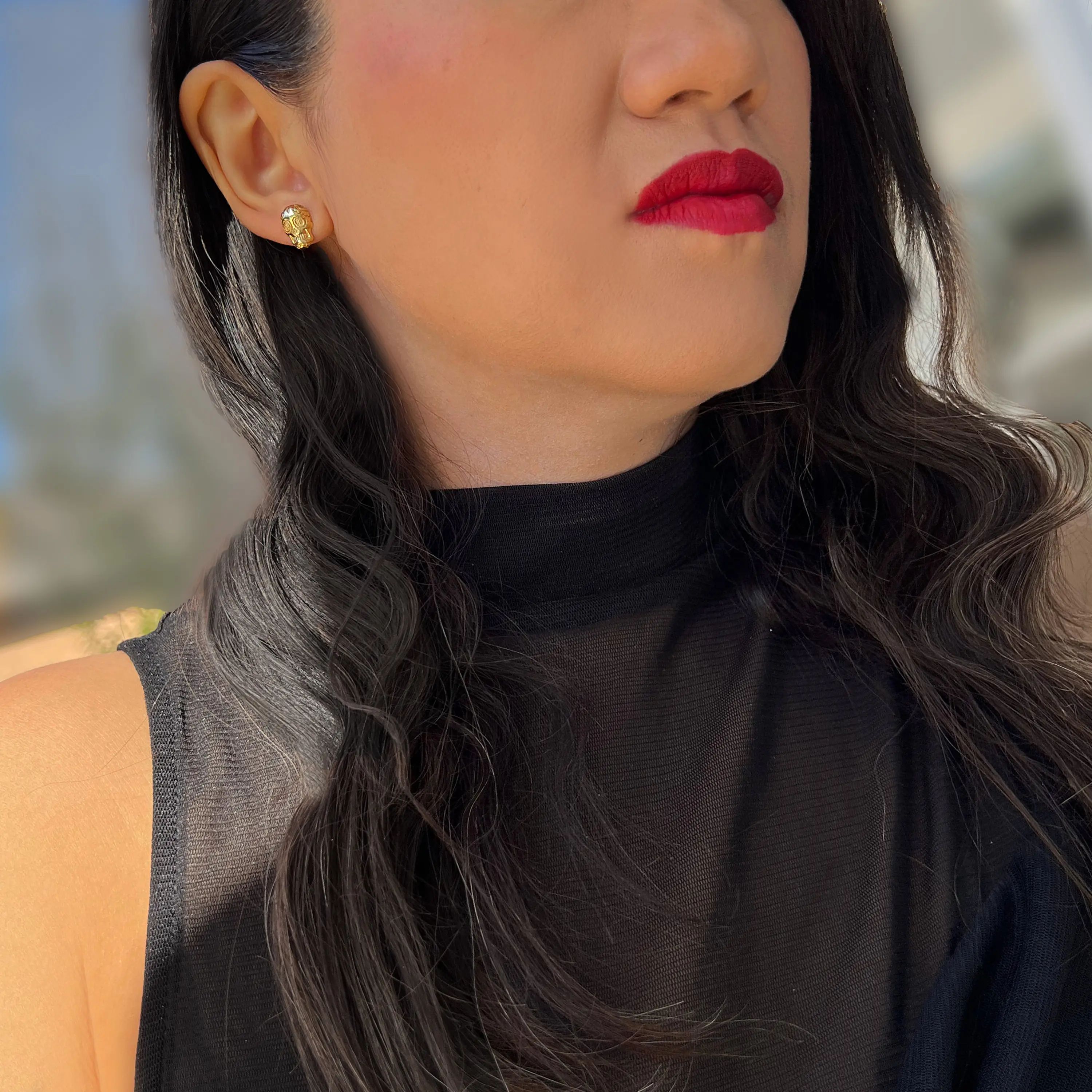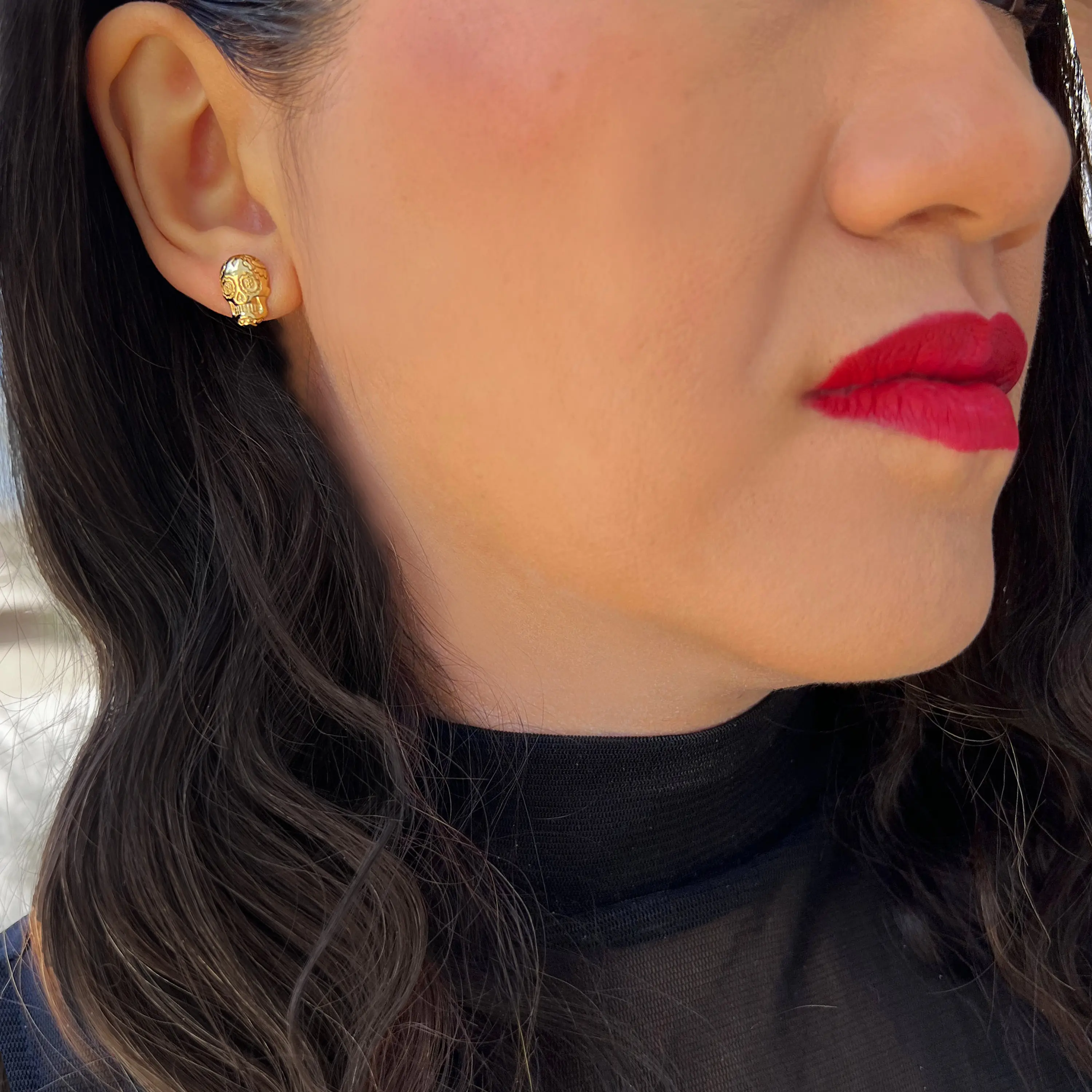 SONIA HOU Day of the Dead Skull Stud Earrings - 18K Gold Over Sterling Silver | S925 Dia De Los Muertos Chic Fashionable Exquisite Fashion Design