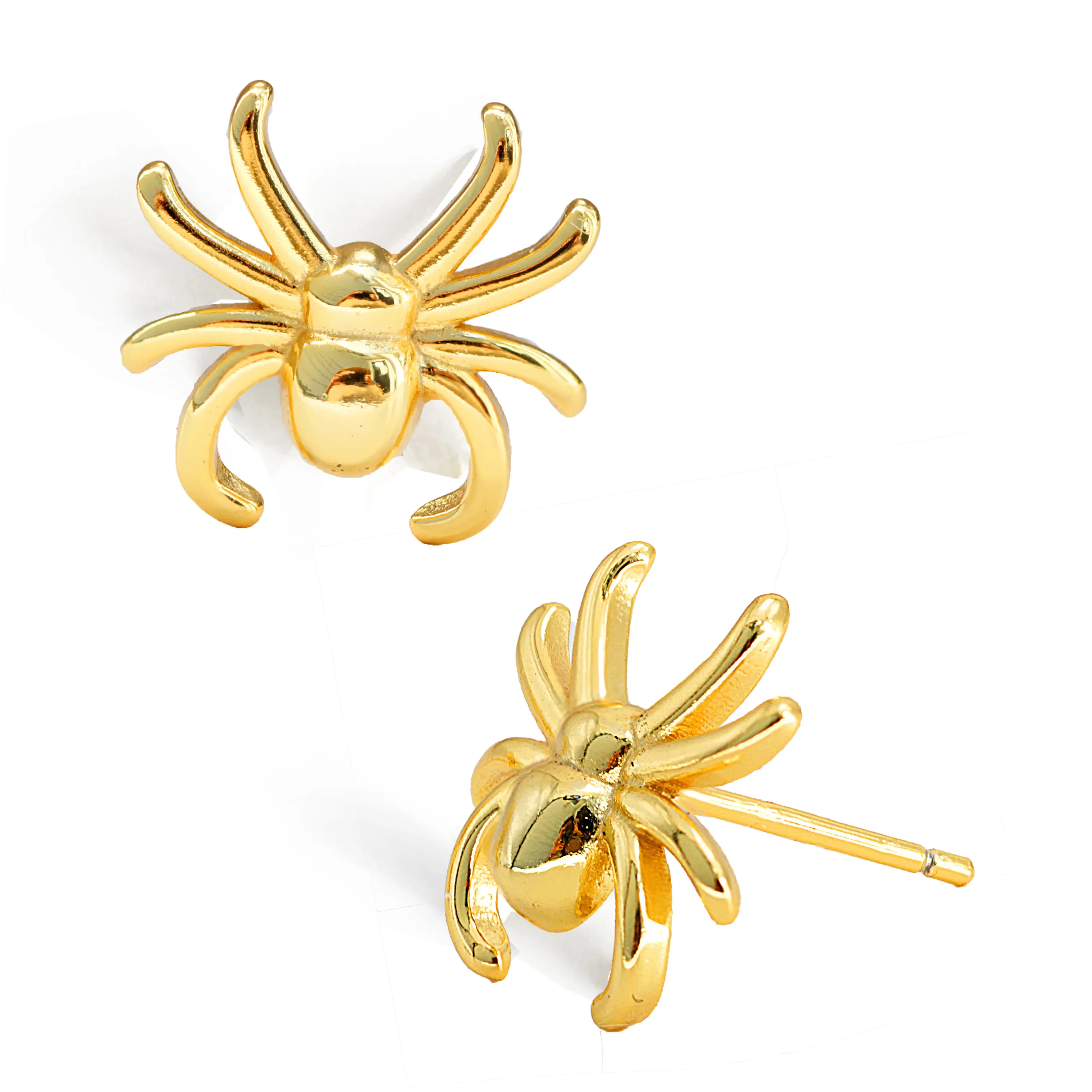 SONIA HOU Spider Halloween Stud Earrings - 18K Gold Over Sterling Silver | S925 Chic Trendy Exquisite Fashion Design Plated Stackable Accessory