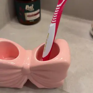 Really cute for q-tips but not deep enough to hold a tooth brush at all