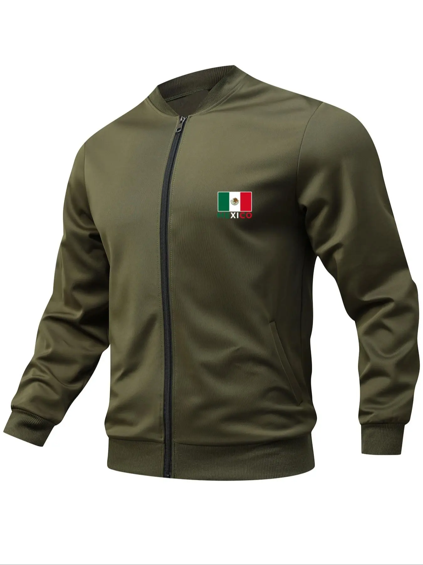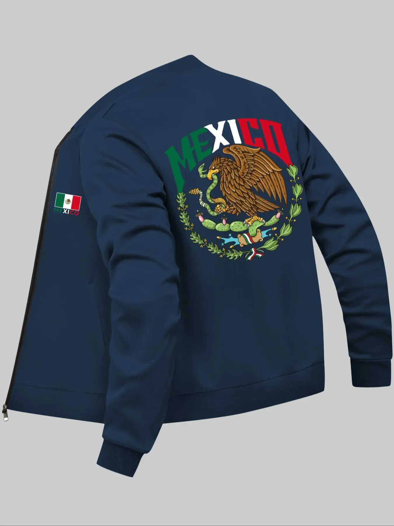 Men's Letter & Eagle & Cactus Print Zip Up Baseball Collar Jacket, Regular Fit Casual Long Sleeve Pocket Outerwear for Fall & Winter, Men's Clothes for Daily Wear