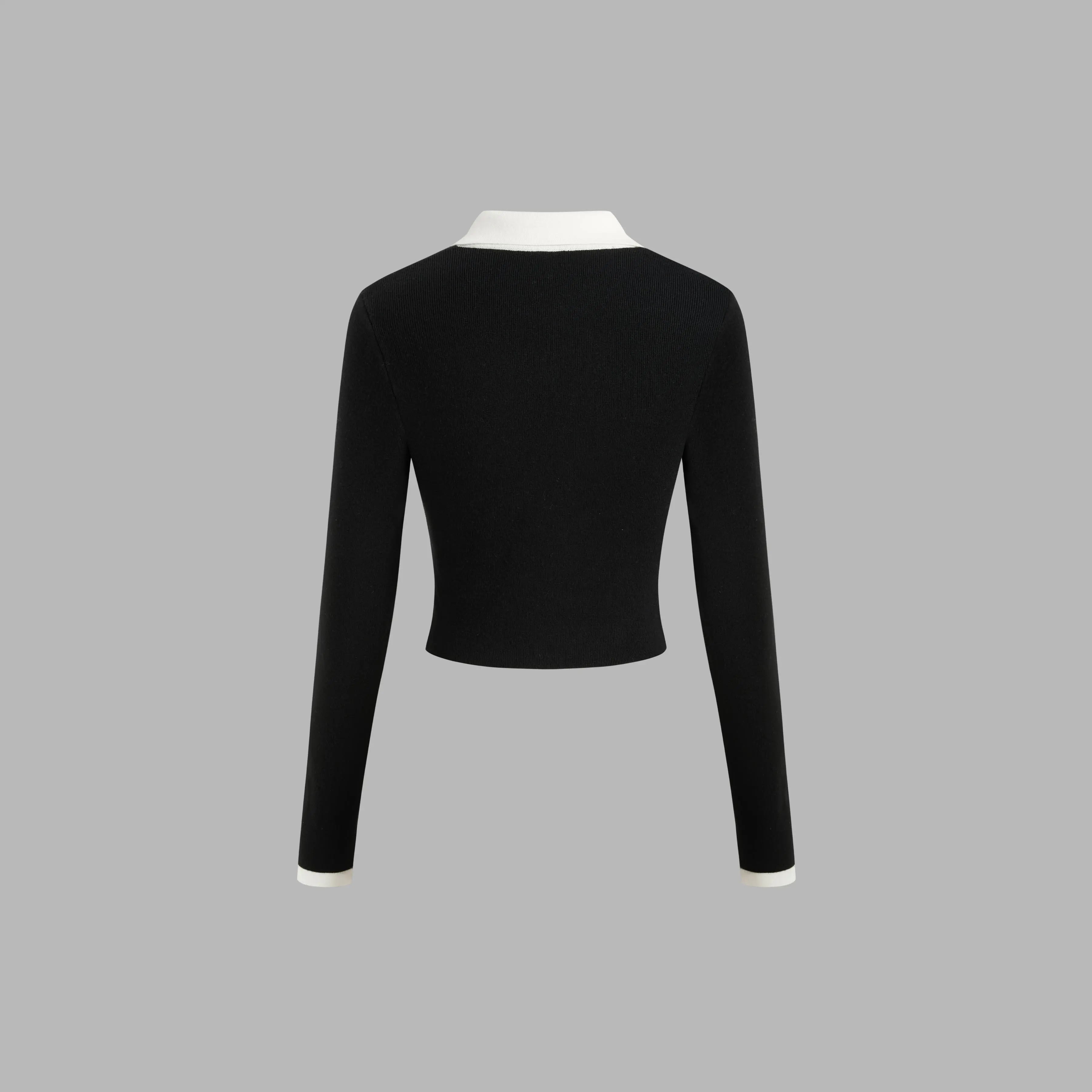 Cider [3 colors, size 0-26] Knit Polo Contrasting Binding Crop Top