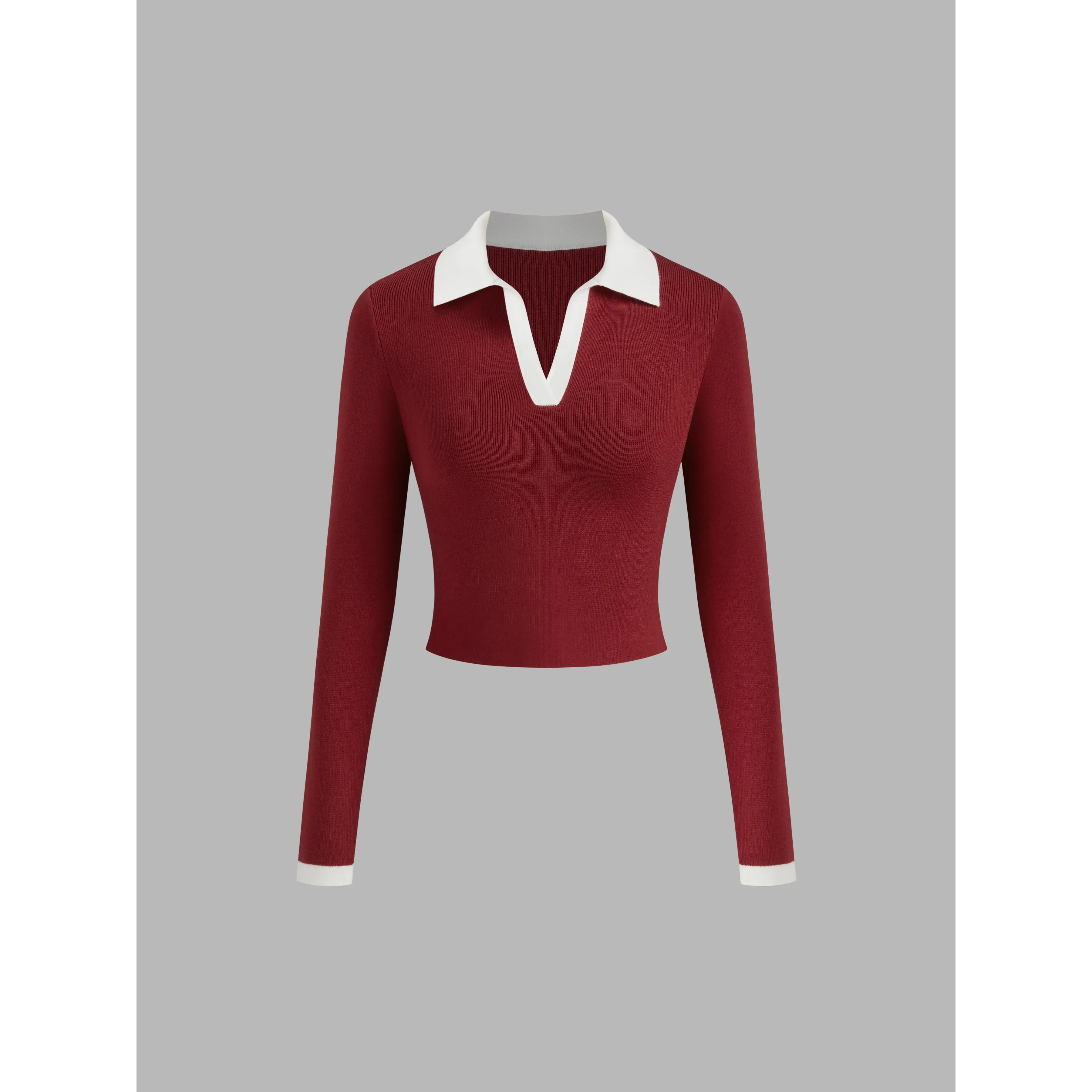 5. Cider [3 colors, size 0-26] Knit Polo Contrasting Binding Crop Top