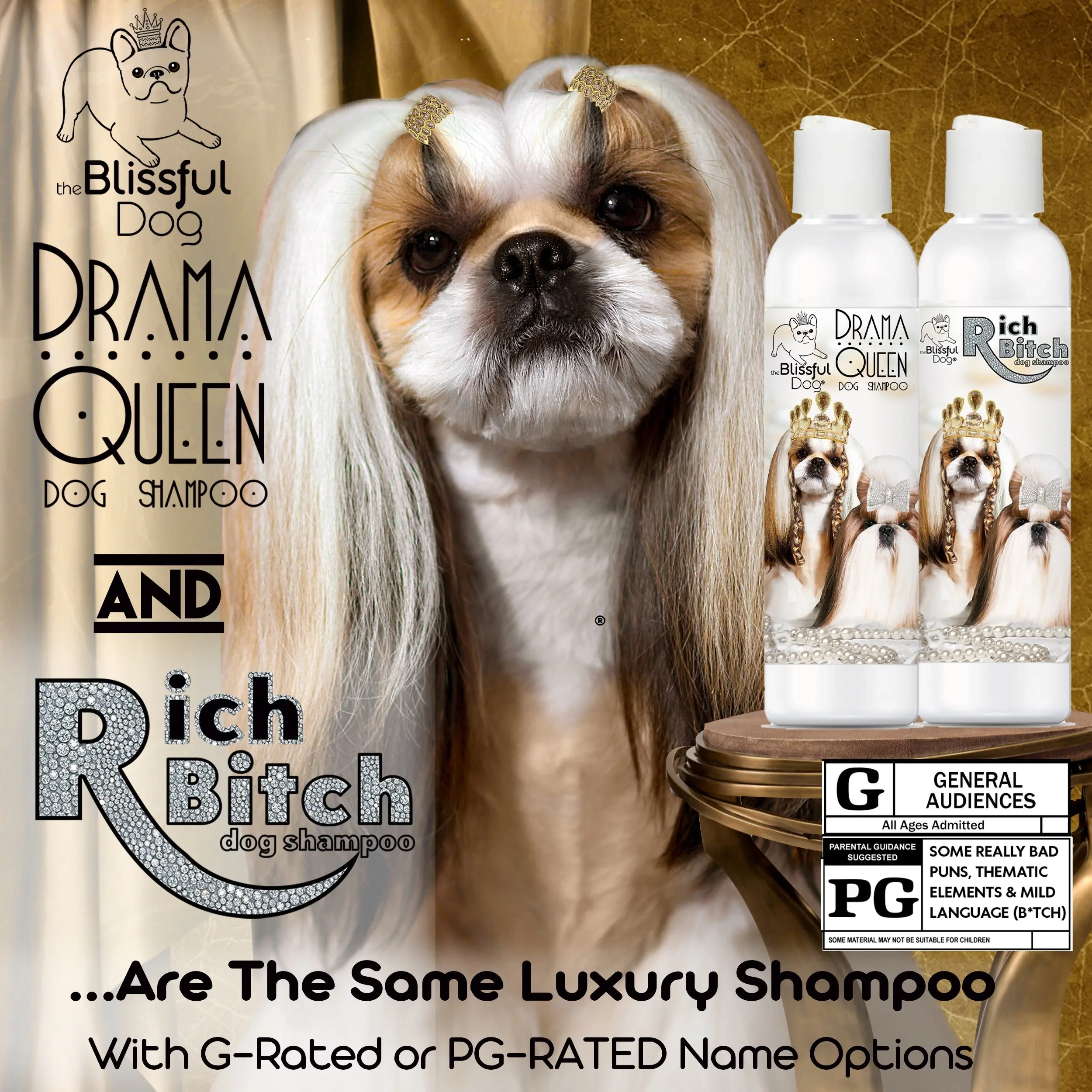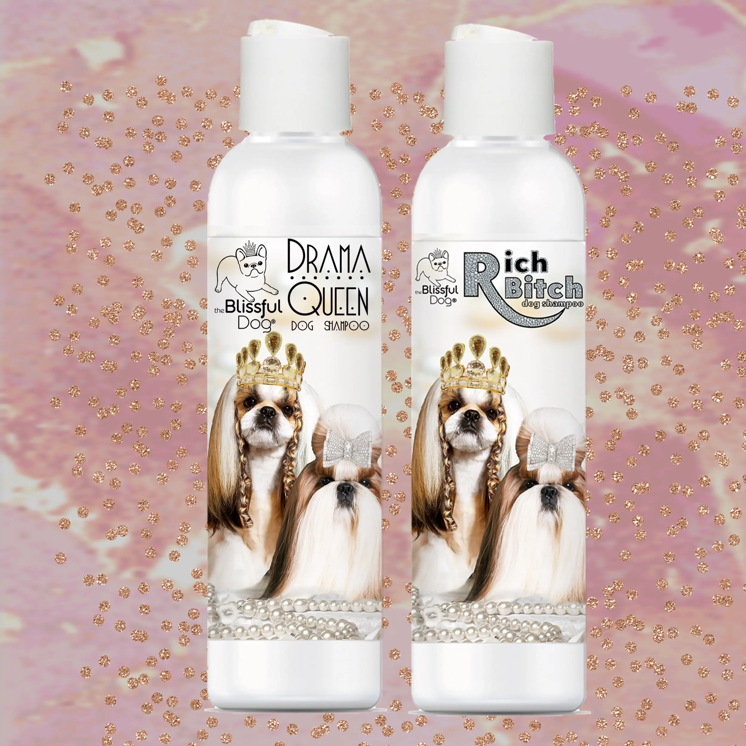 Rich Bitch & Drama Queen Dog Shampoos are elegantly crafted with nourishing botanicals to leave your dog’s coat luxuriously soft and fresh. Created to cleanse, clarify and ultra-moisturize while ever-so tenderly adding sheen and vibrance. Drama Queen & Rich Bitch Shampoo leaves your dogs coat perfectly prepped for the next step in your grooming routine.