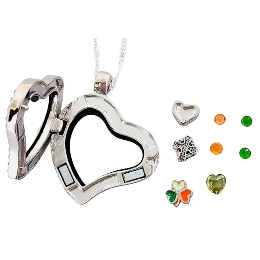 This beautiful heart locket opens from the side so that you can change the charms whenever you wish. A strong magnet keeps the locket closed. 8 locket charms included.