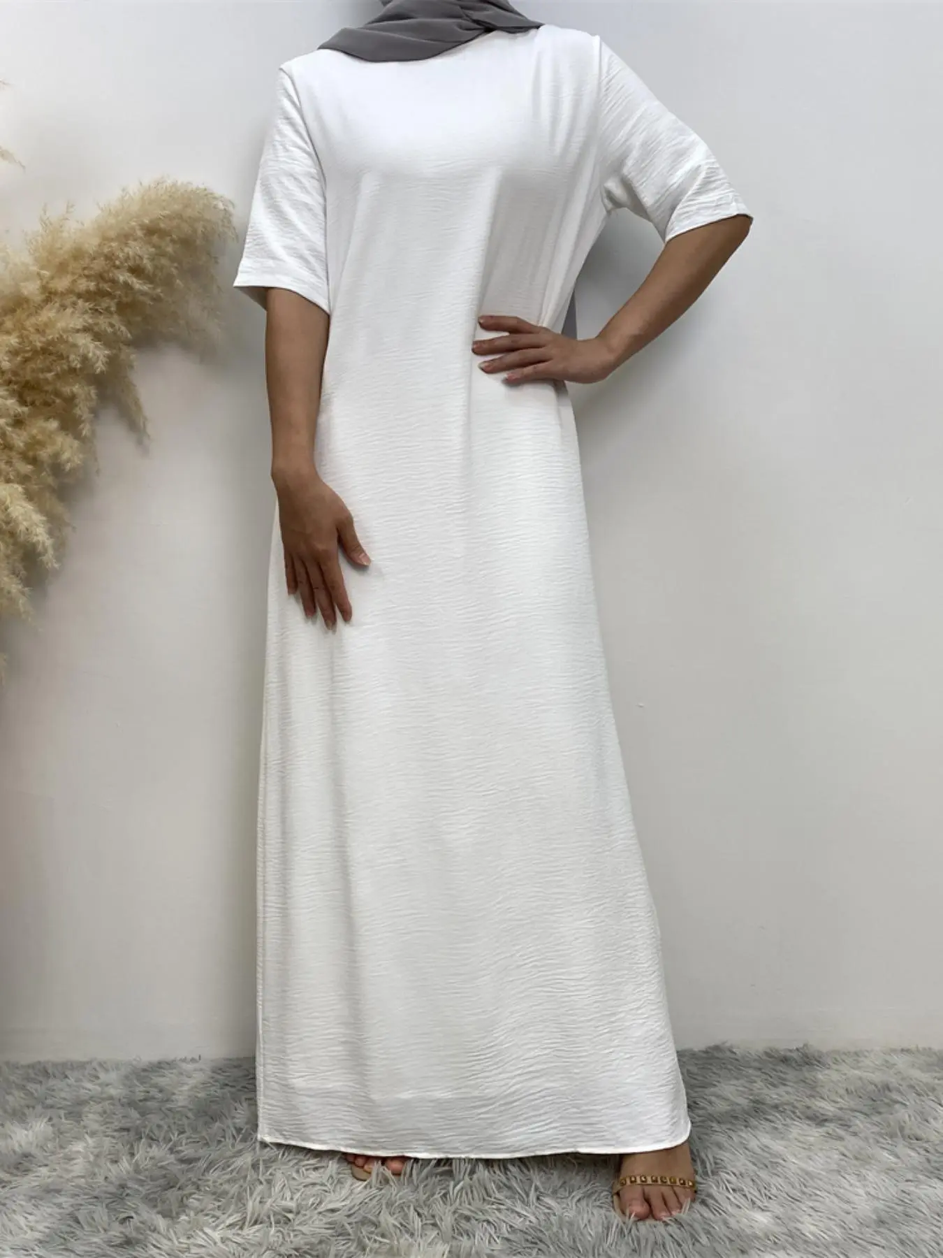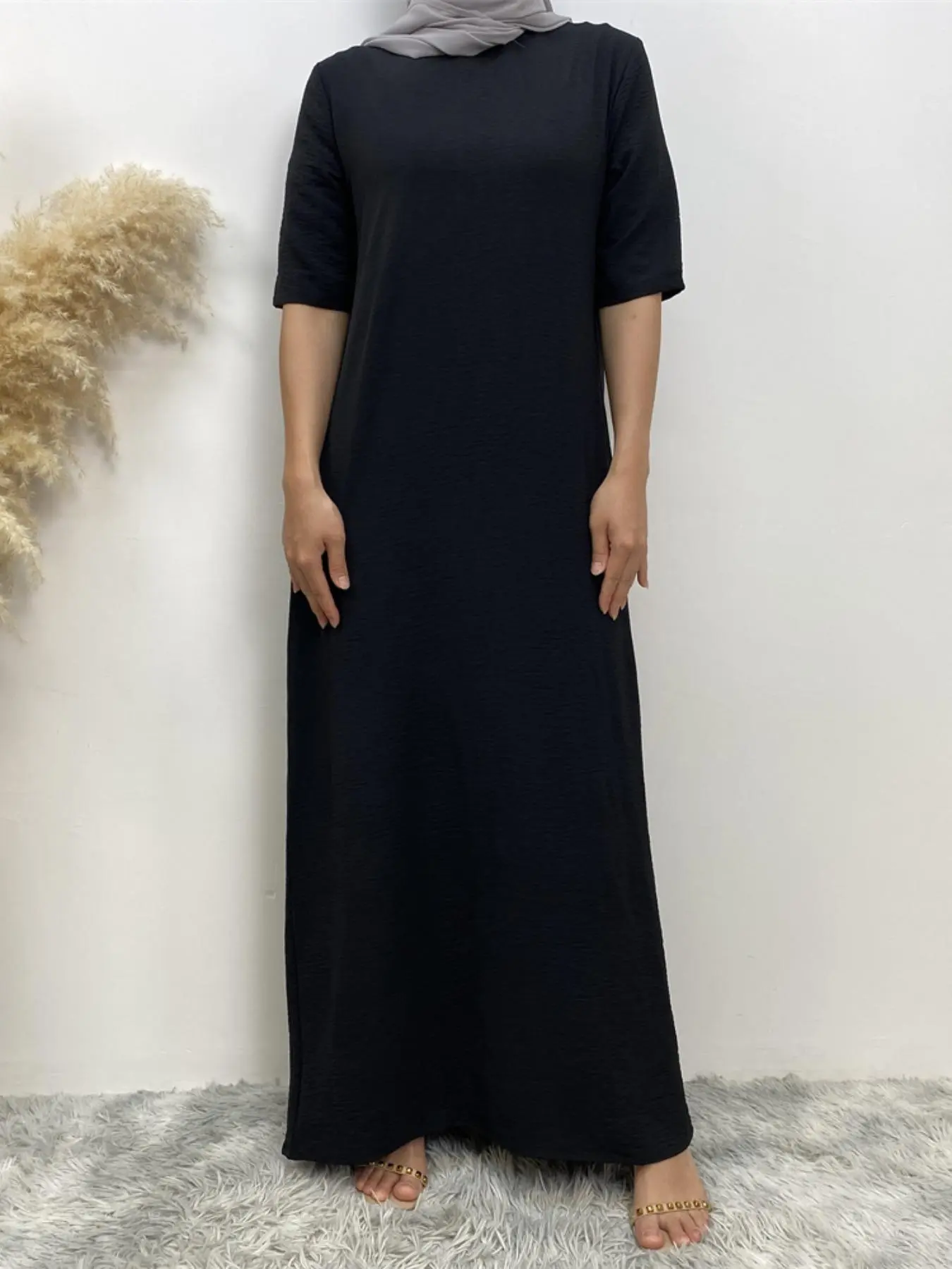 Women's Modest Solid Color Round Neck Long Dress, Casual Half Sleeve Long Dress for Summer, Women's Islamic Clothing for Daily Wear, Muslim Dress, Modest Style Dress, Modest Muslim Outfits