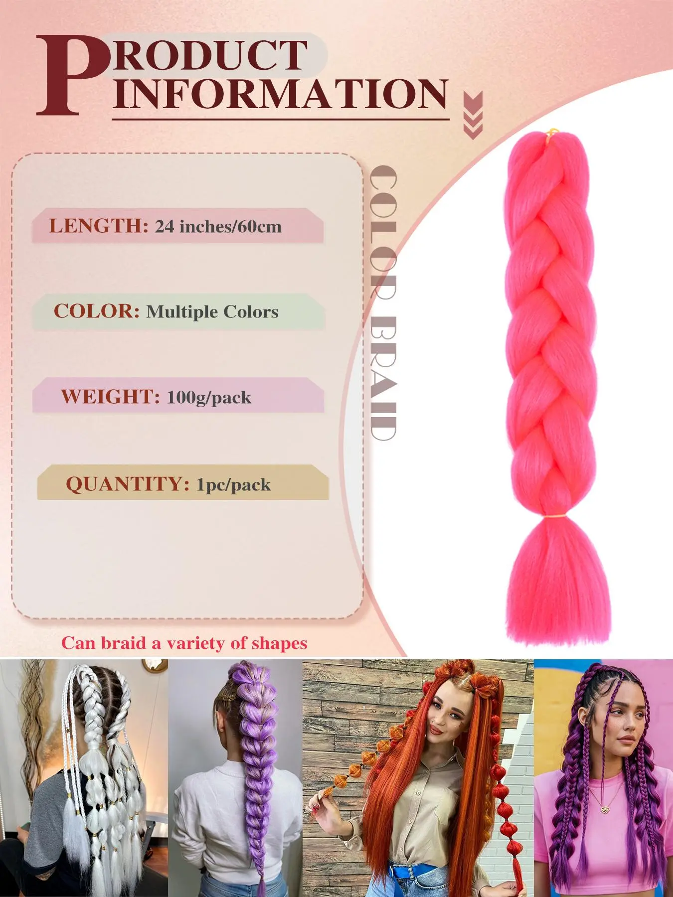 Matches my hair color perfectly!I love that I can brush it out without tearing the fibers. Does tangle a bit but that’s expected! Bounces right back into shape. Looks natural from the back.(Comes with a clip so it does have that weird shape at the top)but no one noticed it was an accessory! Love it!