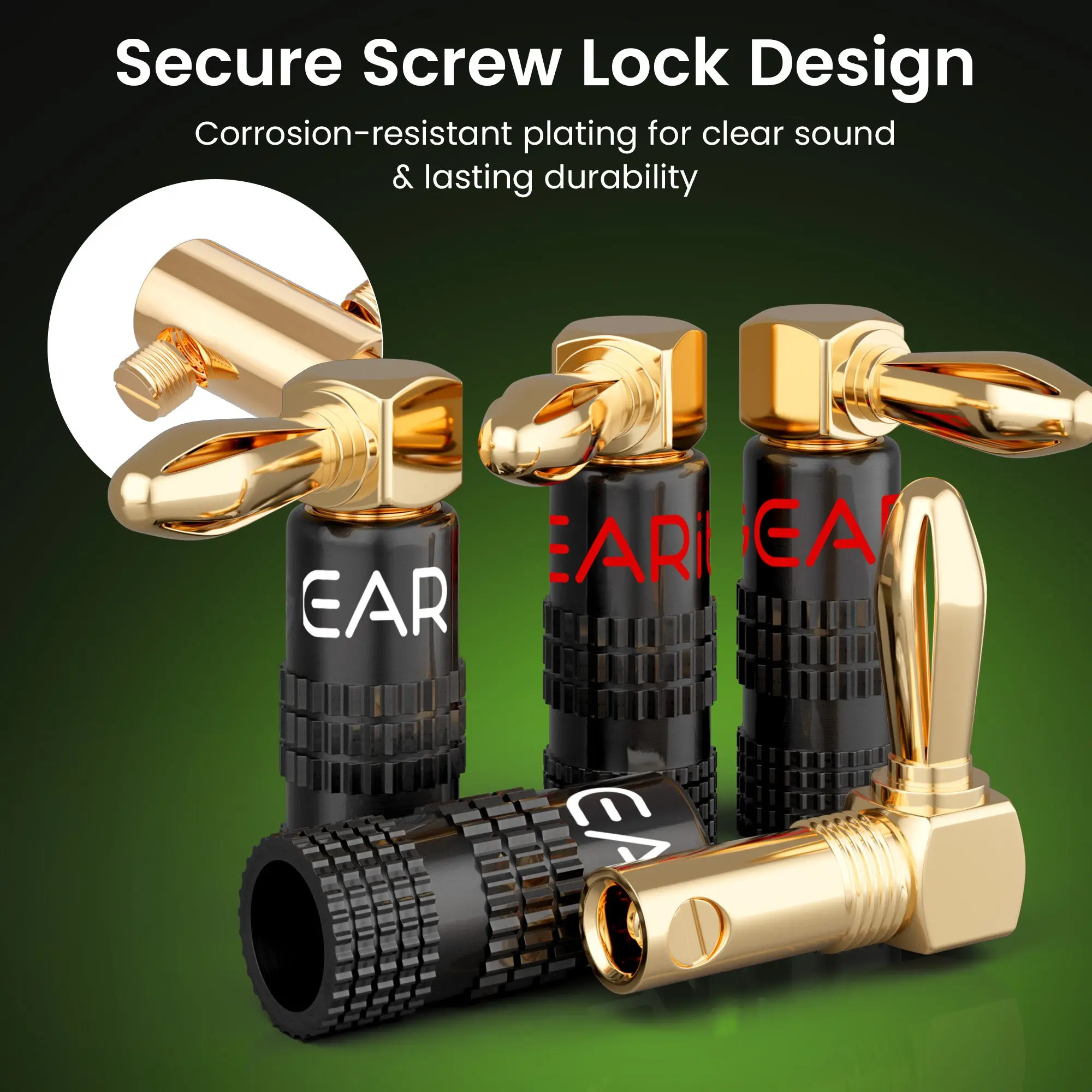 ·RIGHT ANGLE SPEAKER PIN CONNECTORS - GearIT Banana Plug Connectors with Right Angle Pin Plug Type Speaker Connector provide optimum signal transfer from speaker wires. Dual screws keep the speaker wire connection strong and secure.