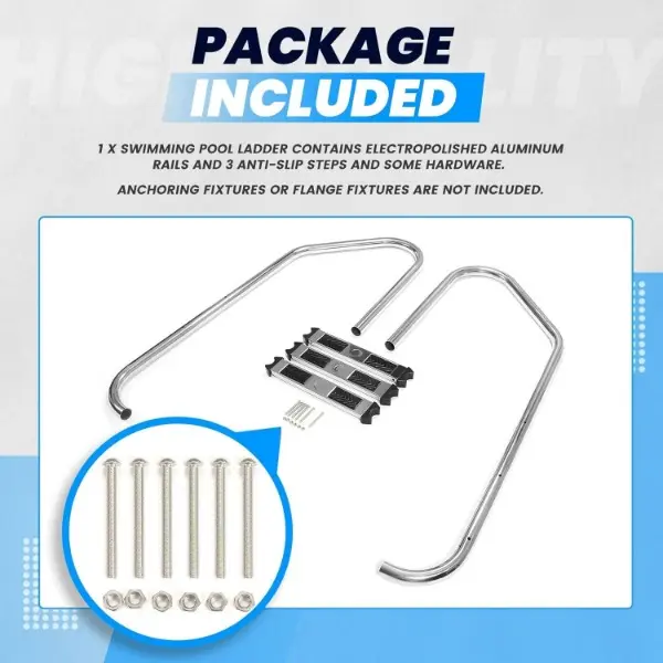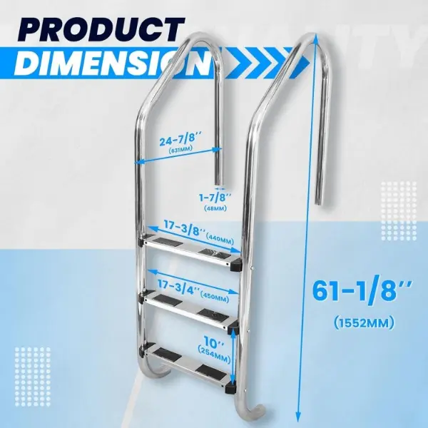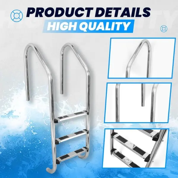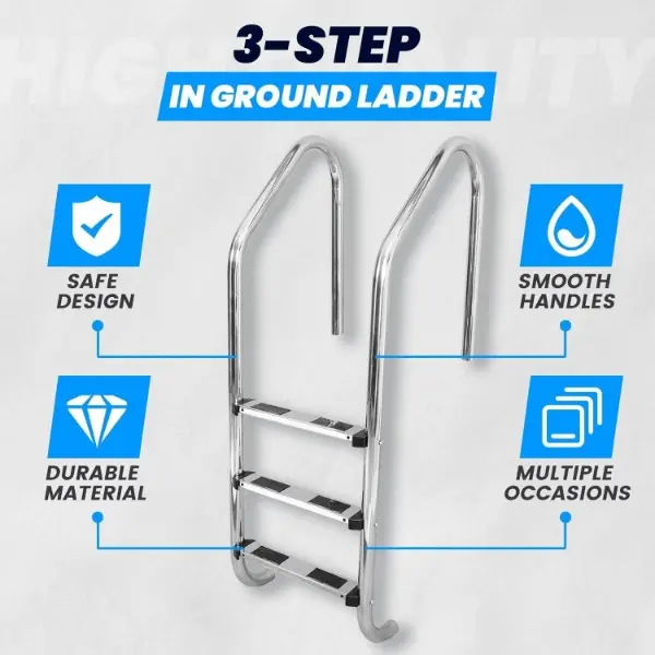 HECASA 3 Step Swimming Pool Ladder with Anti-Slip Pads for Indoor/Outdoor In-Ground Pool 300LBS Capacity Easy to Assemble and Climb 304 Stainless Steel