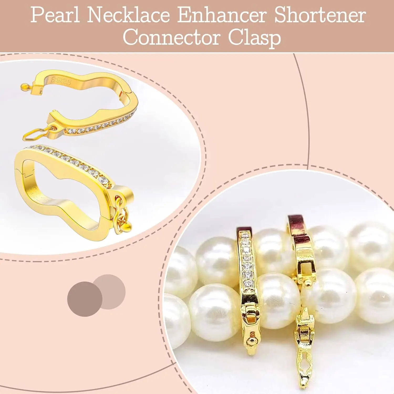 OHINGLT 925 Sterling Silver Necklace Clasp,Pearl Enhancer Push Clasp with Secure Lock,Strand Shortener Openable Lock Extender for Necklace Chain