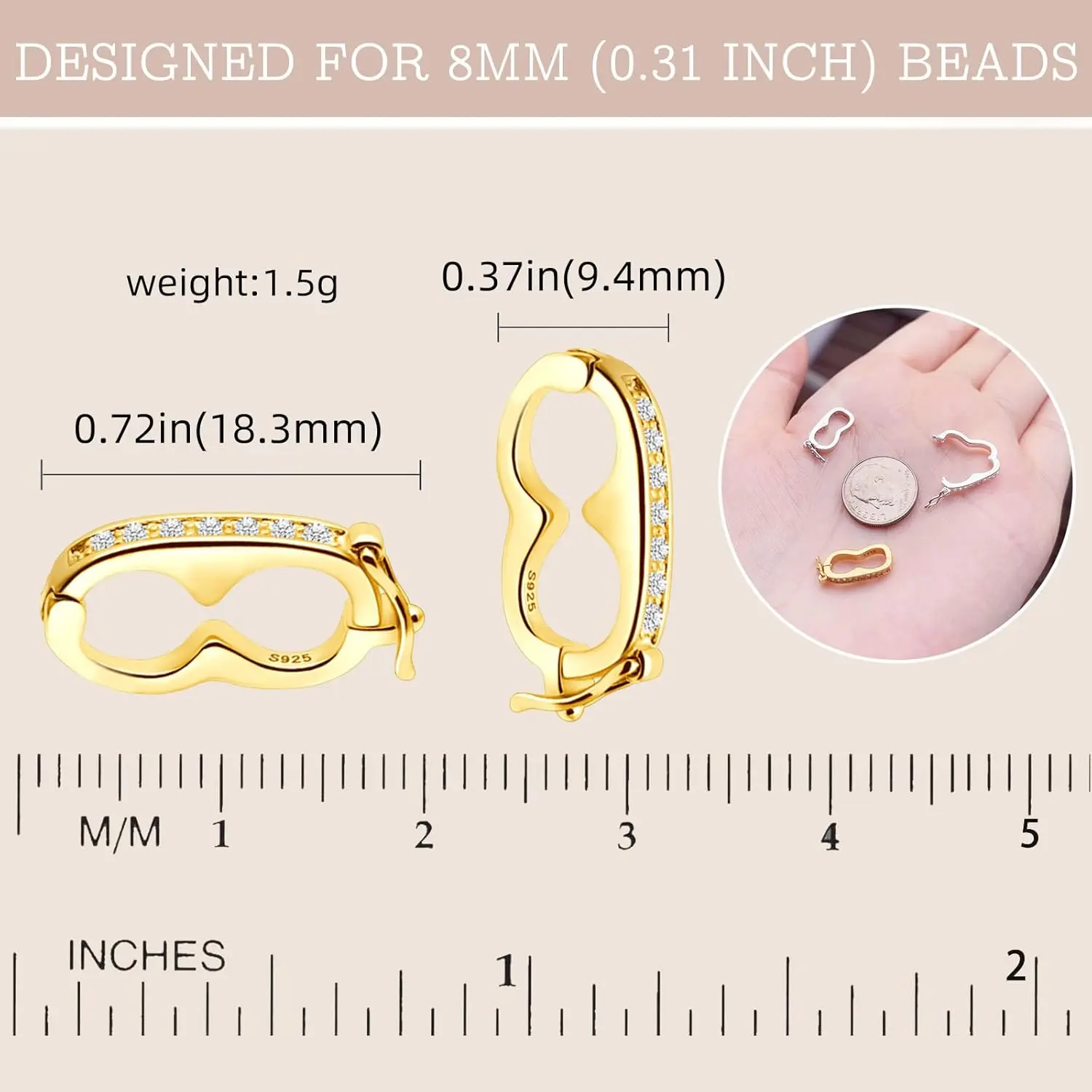 SMALL SIZE: Designed for 8 mm (~0.31 inch) beads, total clasp size 17 mm long x 9 mm wide (0.67 inch x 0.35 inch)
