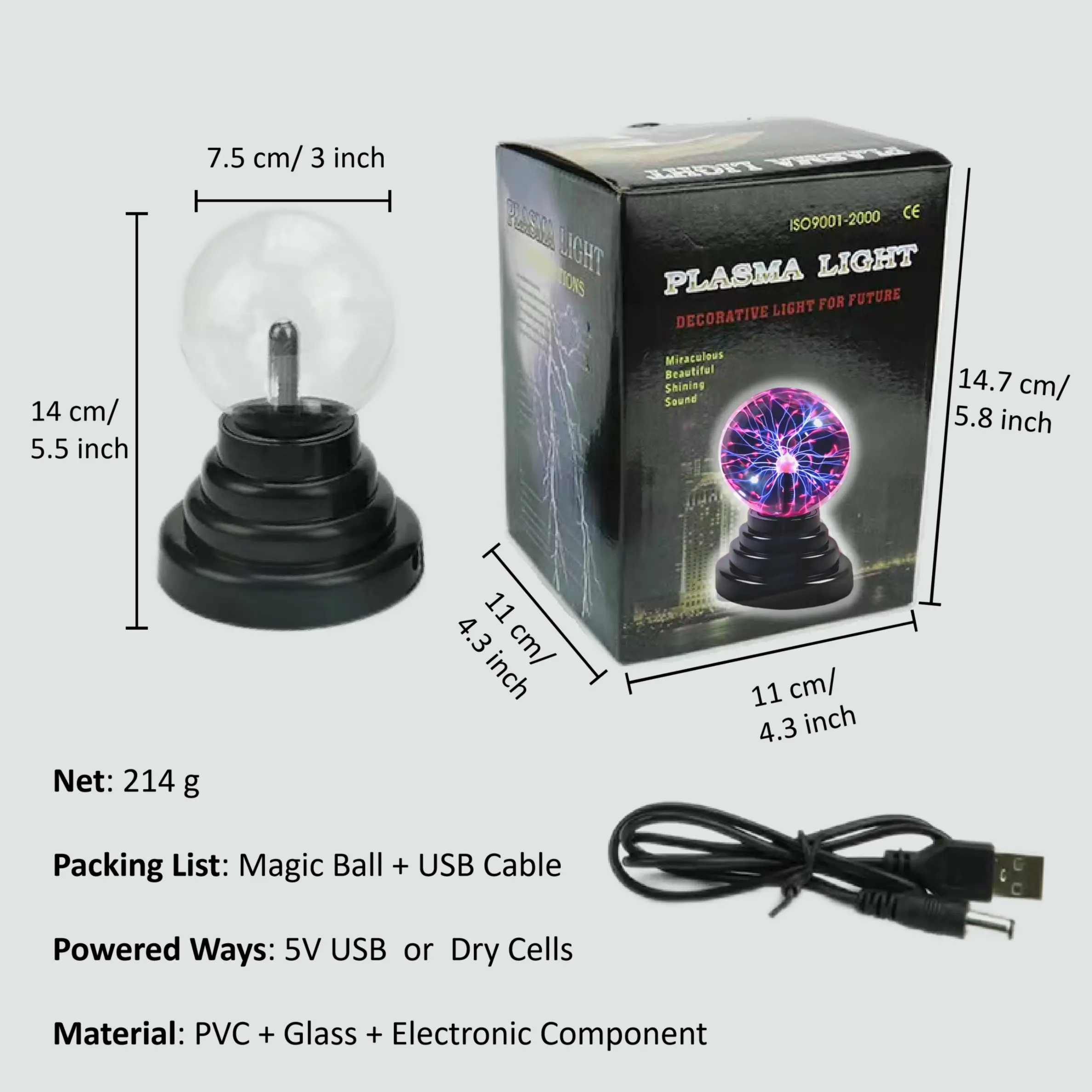 USB Powered/AAA Batteries Required Plasma Static Electricity Ball Lamp, 1 Count Party Home Bedroom Decoration, Amazing Birthday Gift Present Science Teaching Night Lamp, Atmosphere Lamp