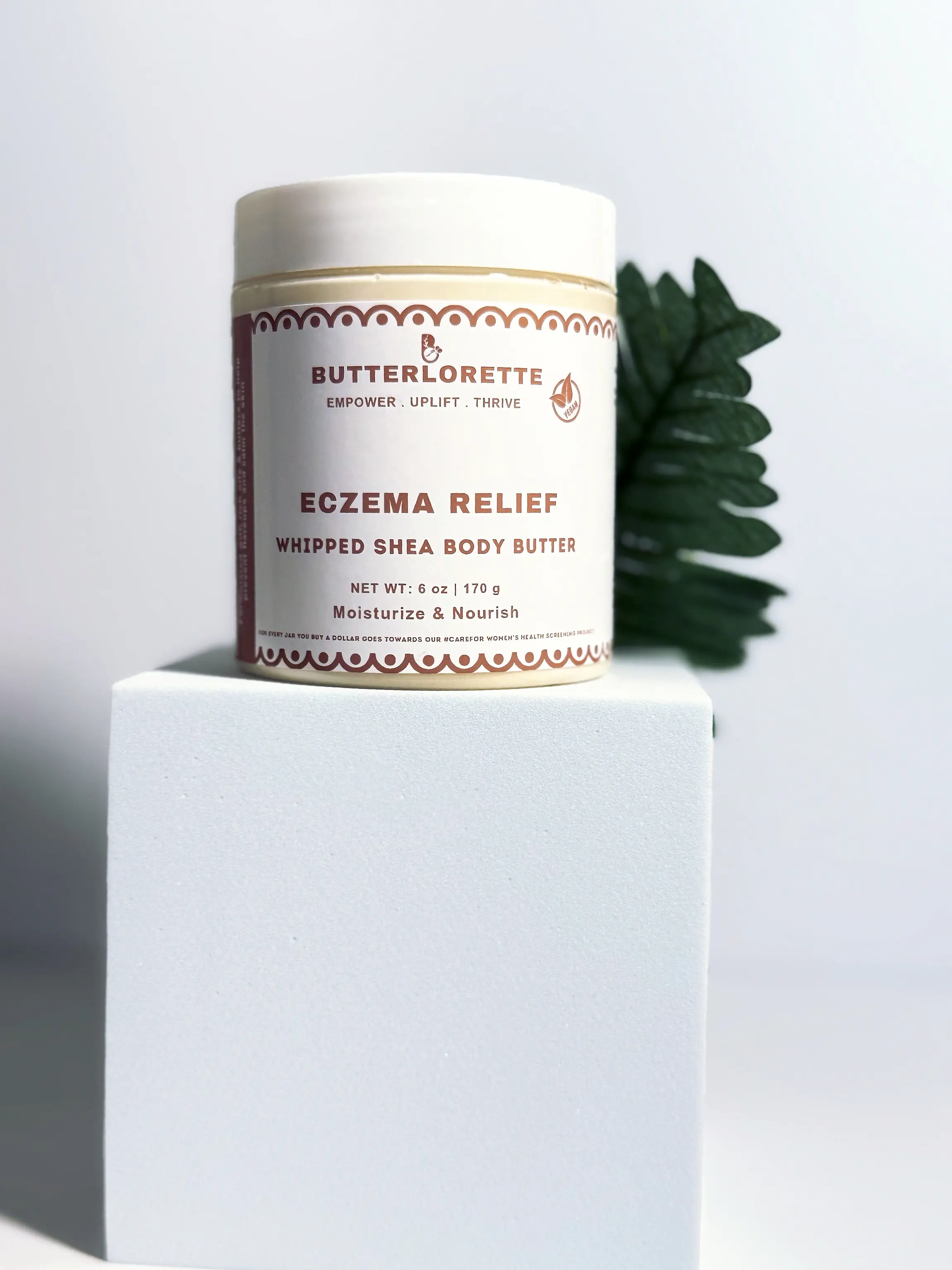 • How to Use - Apply a small amount of our Eczema Relief Body Butter to clean, damp skin, focusing on areas prone to dryness or irritation. Gently massage until fully absorbed. Use daily, especially after bathing, for best results. For intensive relief, apply a thicker layer to affected areas before bed and allow it to work overnight.