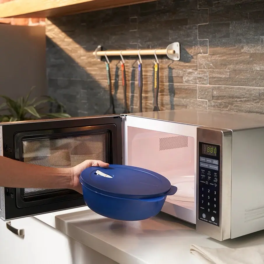 ¿Frío? ¿caliente? Este set CrystalWave® te ofrece múltiples tamaños. Pasa del frigorífico a la comida para opciones frías como ensalada o fruta, o simplemente abre el orificio de ventilación para recalentar en el microondas para comidas templadas o calientes. Al estar tapados, no se derraman ni salpican.