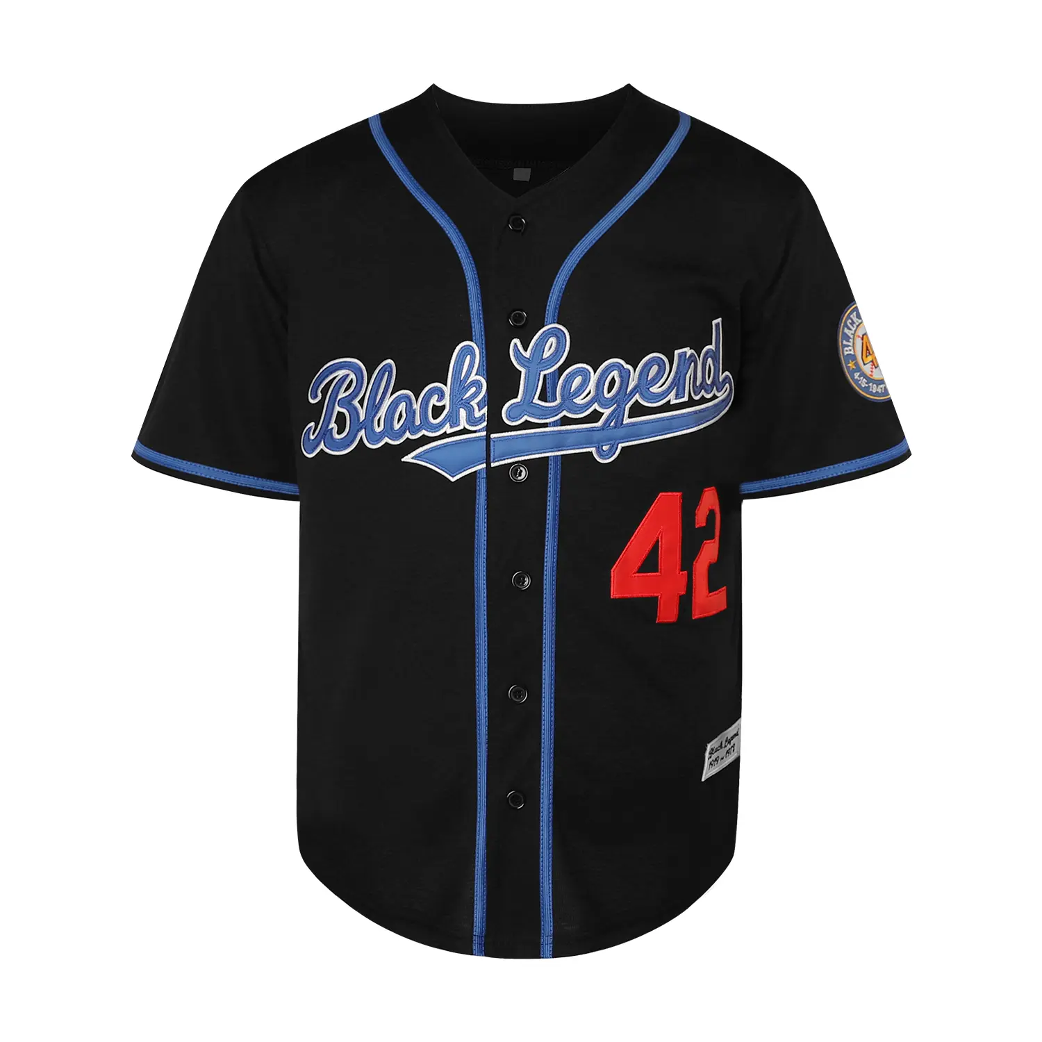 Dabuliu Men's Black Legend Retro Baseball Jersey Embroidered Patches Sewn Hipster Hip Hop Shirts