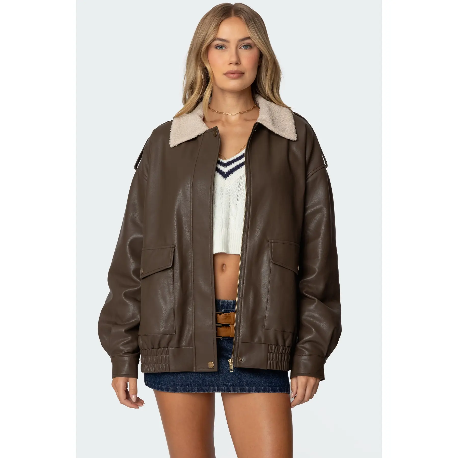 It’s a nice thick denim material. belt feels a bit cheap but i think it looks nice without it, and i’ll prob use a different one. fit is great- im 5’2, 150 pounds and i got a large. the shorts under are good coverage so i wont flash anyone even though its super short (which is what i wanted)